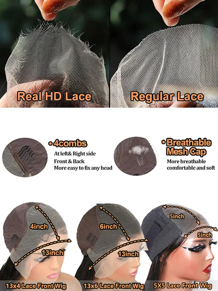 Lace Materials:Hd Lace Wig, Undetectable Lace, Super Melted Into All Skins, More Natural Realistic