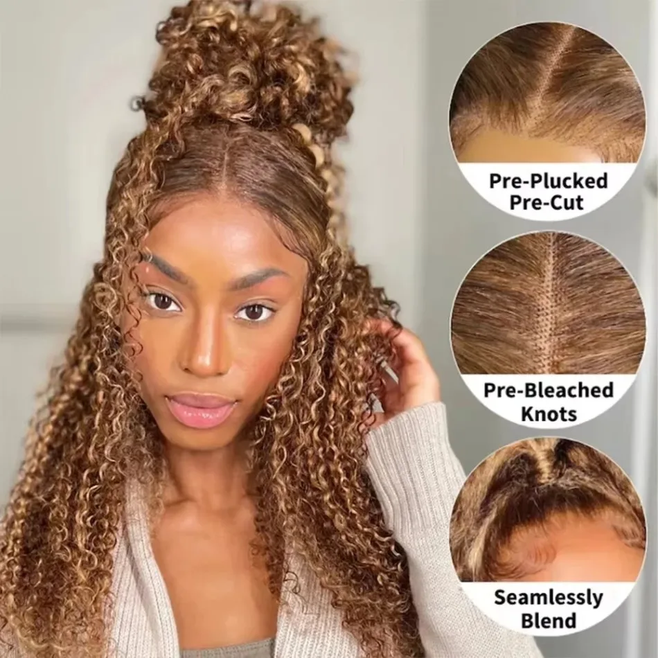 【360 Deep wave Lace Front Wigs Human Hair 】:360 Honey Blonde Deep Curly Lace Front Wigs Human Hair from 100% Unprocessed 12A Brazilian Young Girl Donors. Invisible drawstring, Soft, and Breathable. It Is Ensure Wig Healthy And Elastic. Extremely Soft And Smooth, Without Shedding, Tangles, Non Sticky, Hd Lace Front Wigs Human Hair Reusable And Last Longer With Proper Care