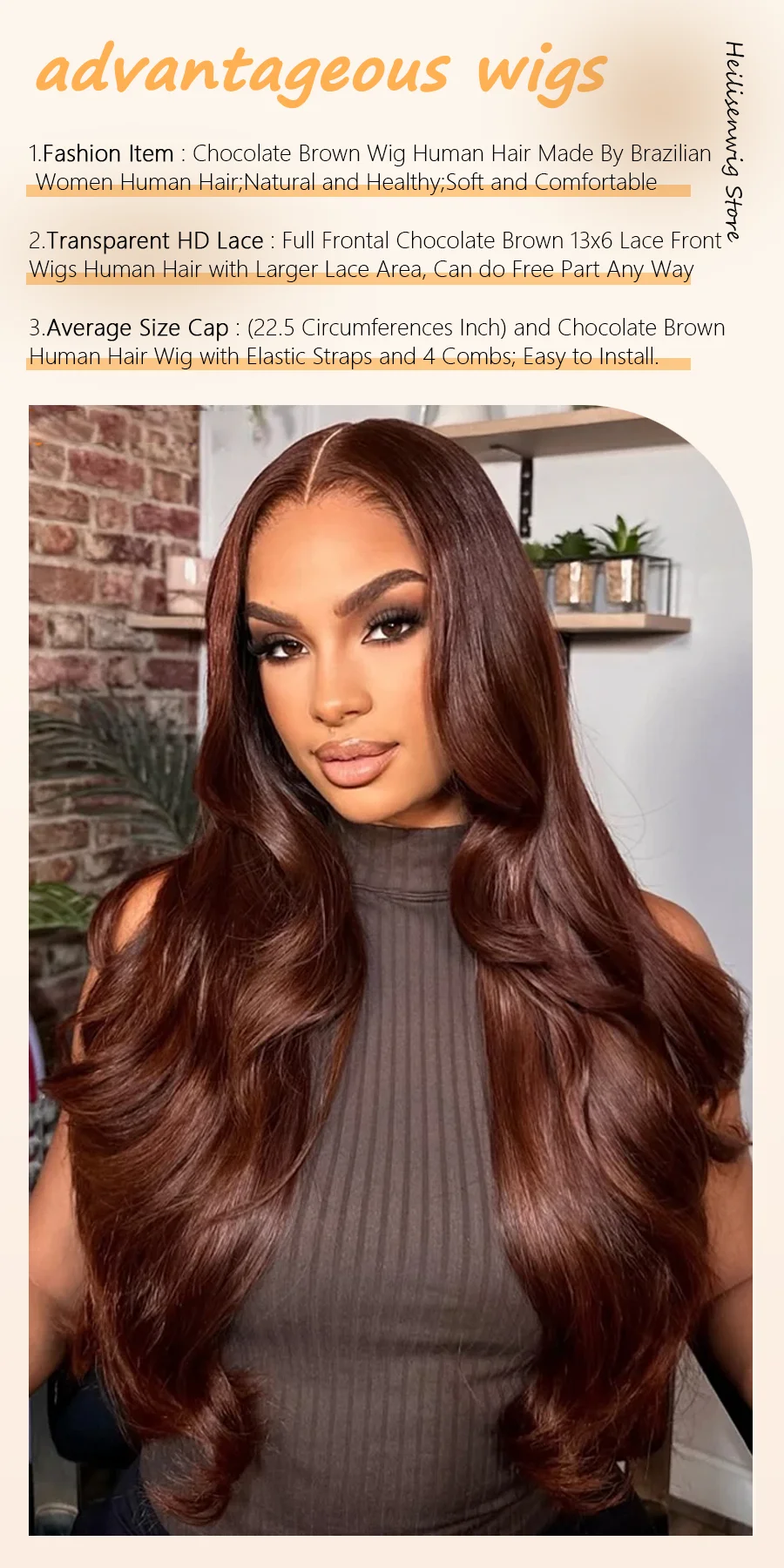 Body Wave 13x6 HD Transparent Lace Frontal Wig 36 Inch 220% Density #4 Chocolate Brown Real Brazilian Human Hair Wigs For Women