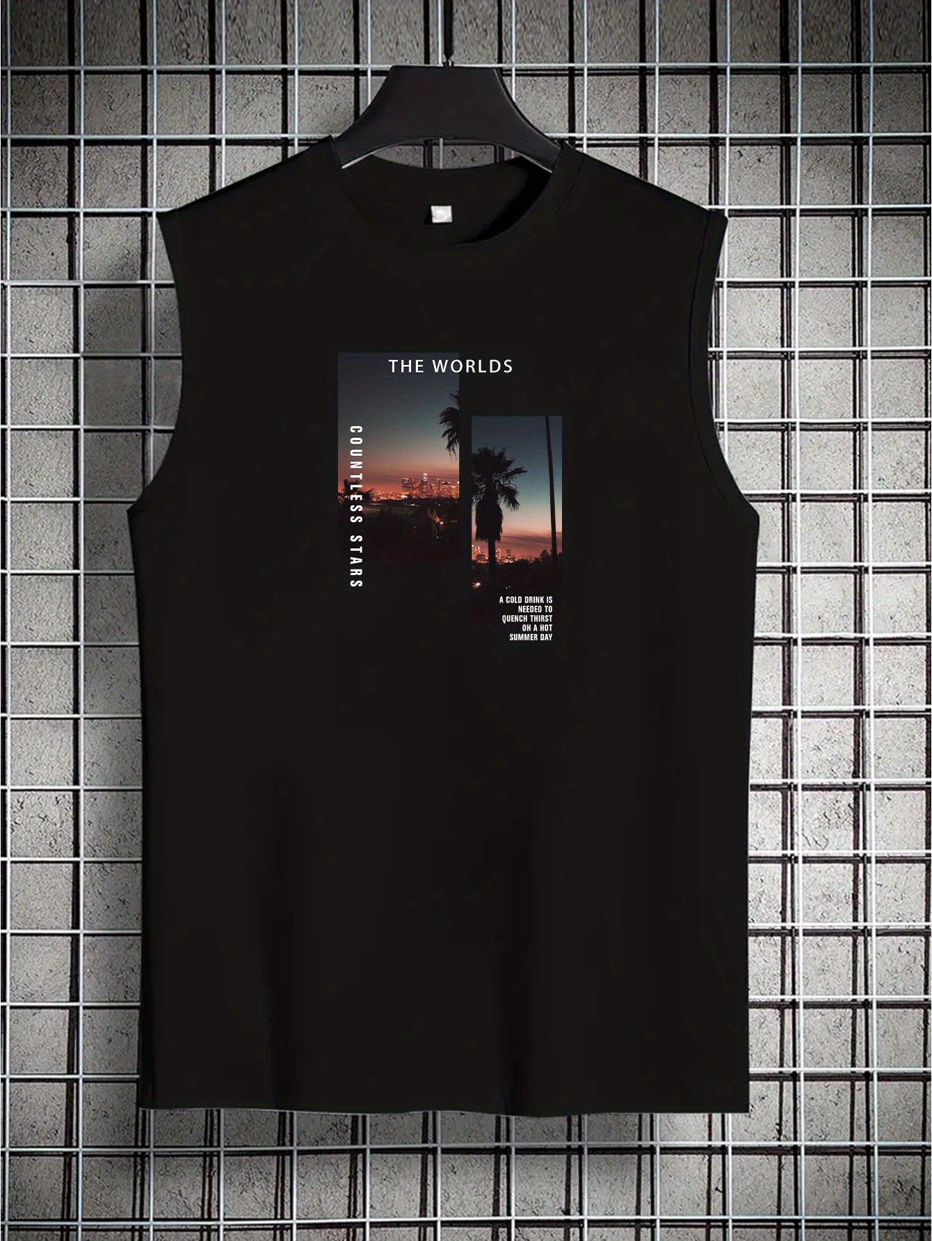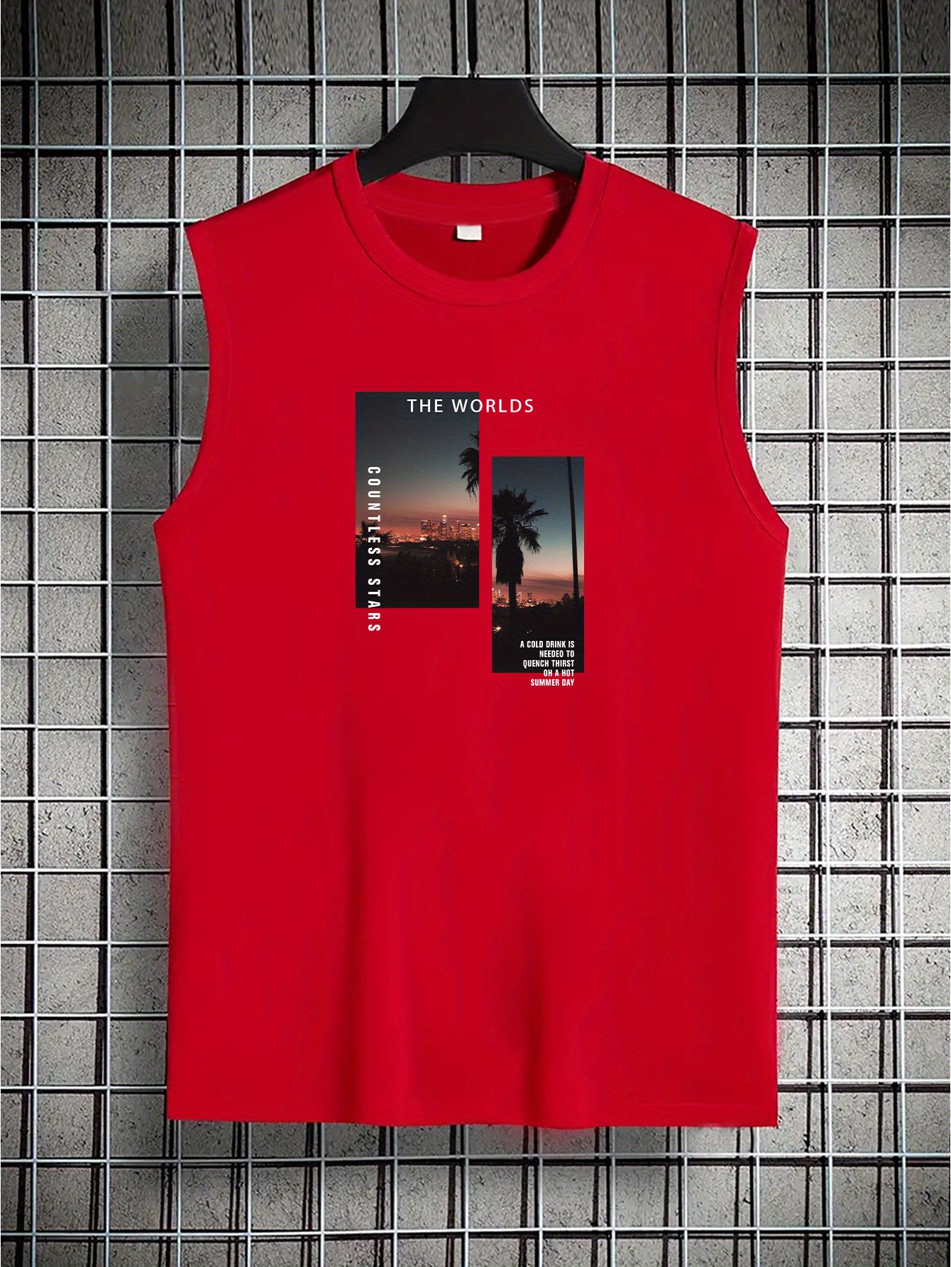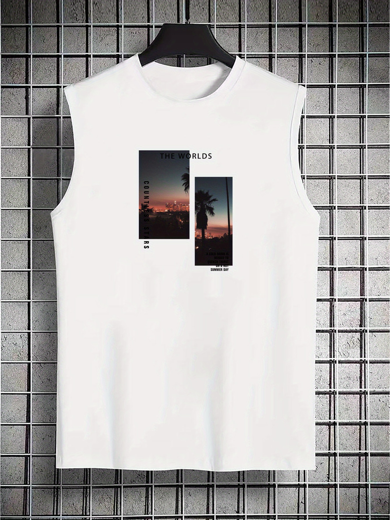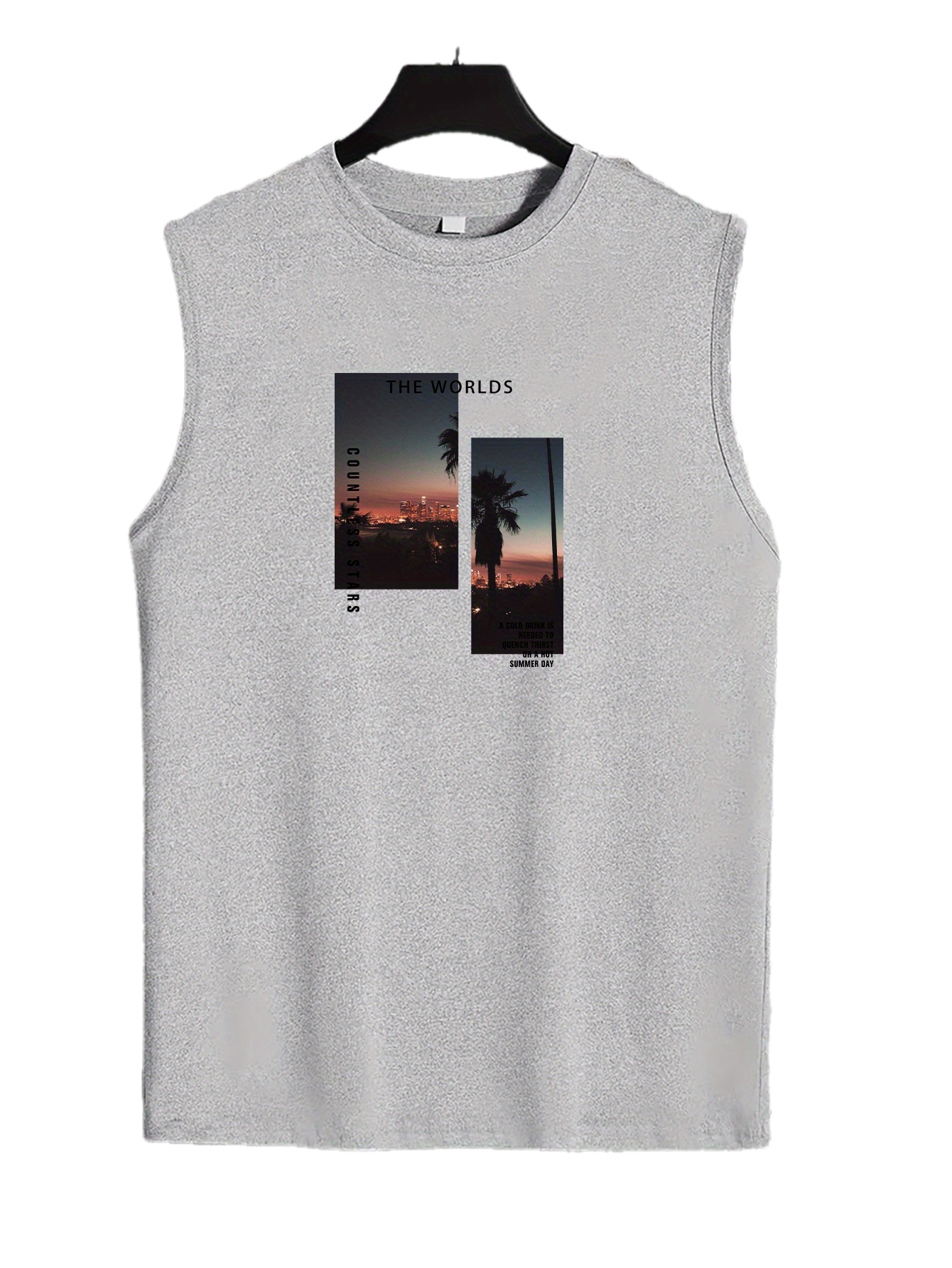 Coconut Tree Print Men's Quick Dry Moisture-Wicking Breathable Tank Tops Athletic Gym Bodybuilding Sports Sleeveless Shirts For Workout Running Training Men's Clothing