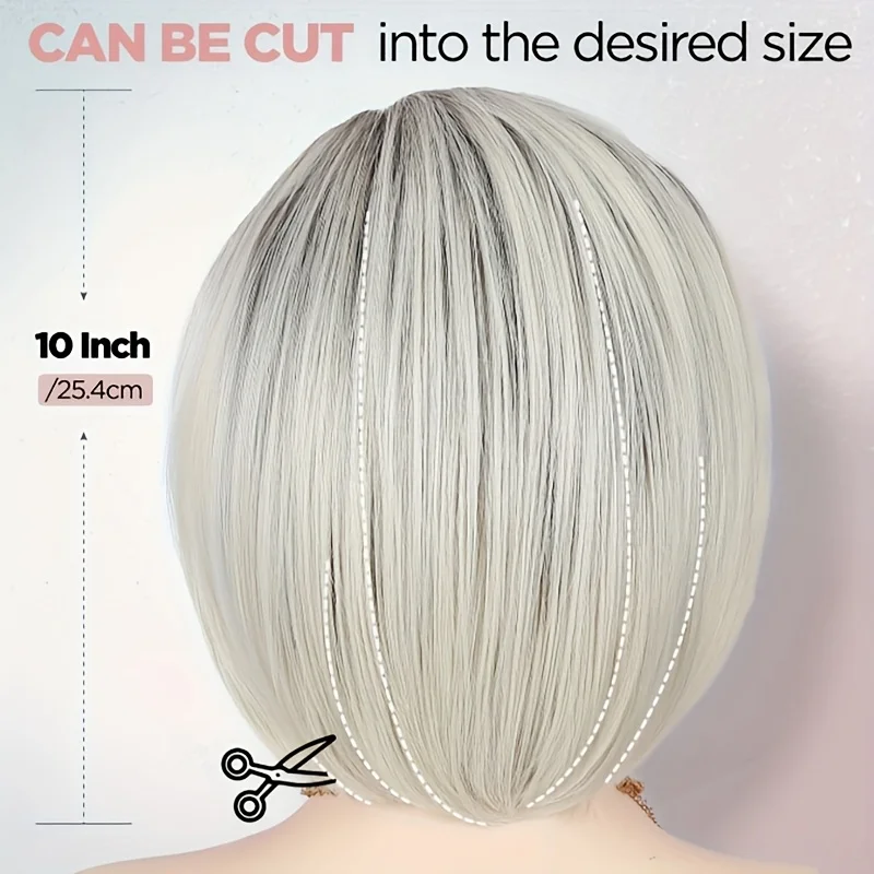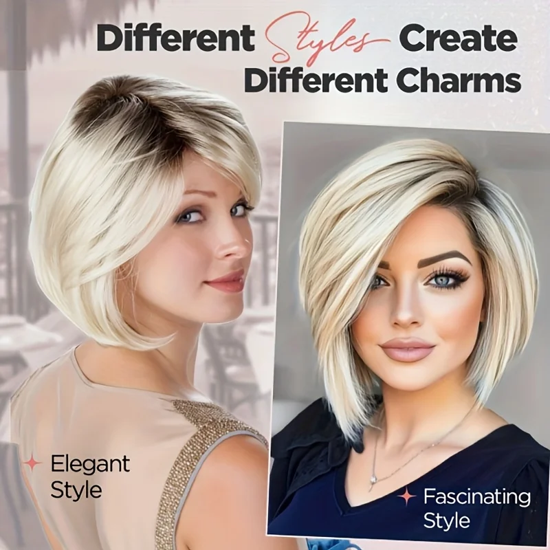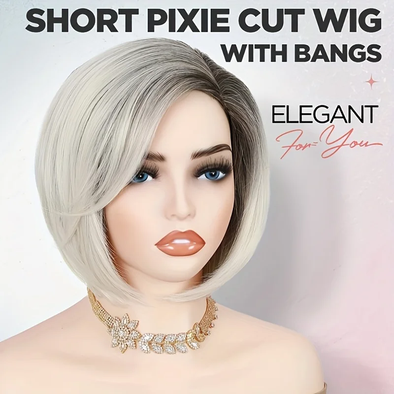 Deep root gradient white side-divided bob elf cut synthetic chemical fiber wig, suitable for daily outfits