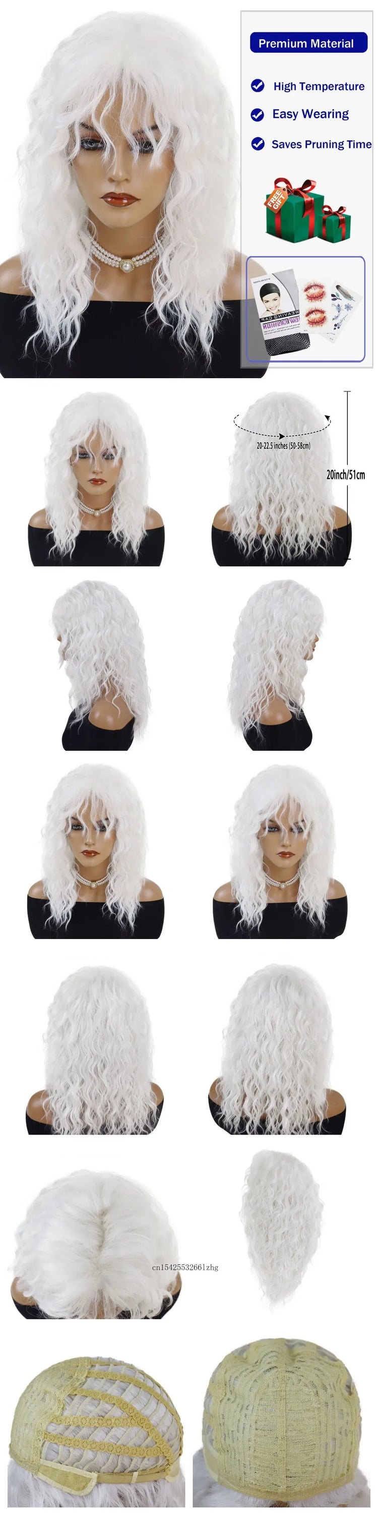 GNIMEGIL Synthetic Natural White Wig Long Curly Hair for Women Daily Use Wig with Bangs Cancer Patient Gift Outfits Costume Wigs