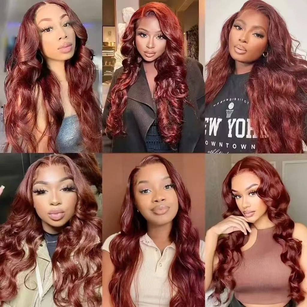 HD 13x4 Reddish Brown Lace Front Human Hair Wigs Body Wave Brazilian Glueless Wigs Human Hair Colored Red Brown Wigs Pre Plucked
