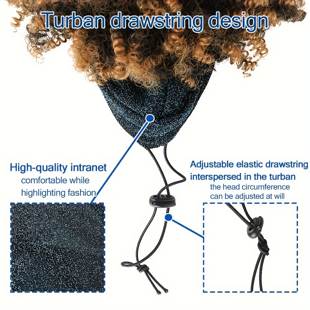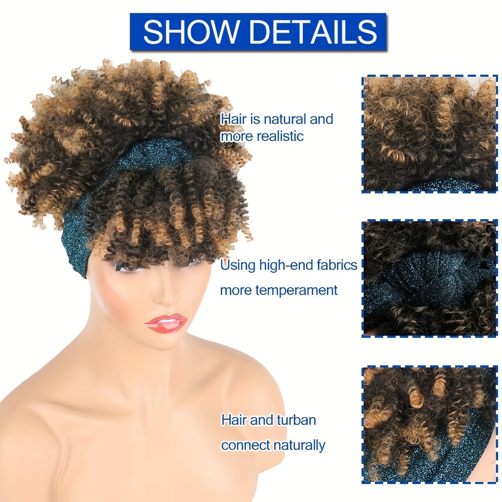 Headband Wigs For Women, Synthetic Short Afro Kinky Curly Wigs Dark Brown Wig With Bangs Wrap Wigs 2 In 1 Turban Wig Drawstring High Puff Wigs Headwrap Wigs With Headband Attached Updo Music Festival