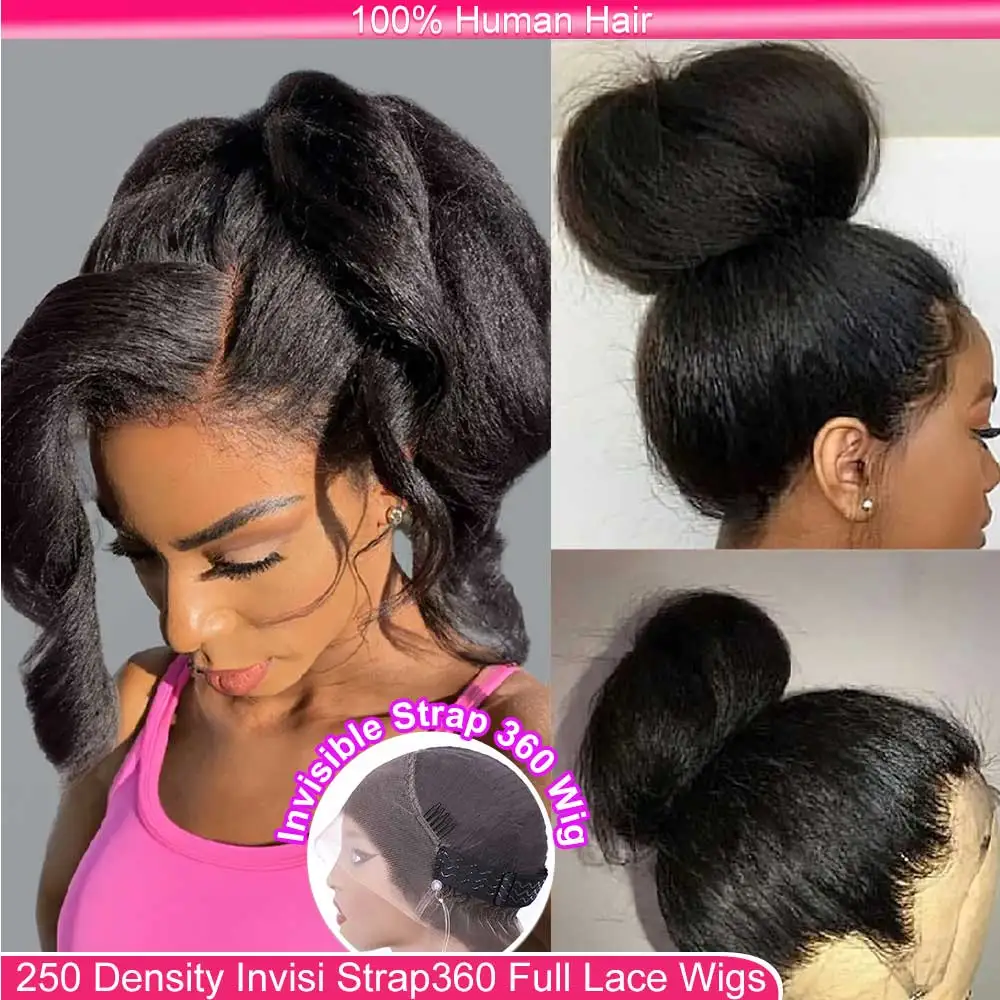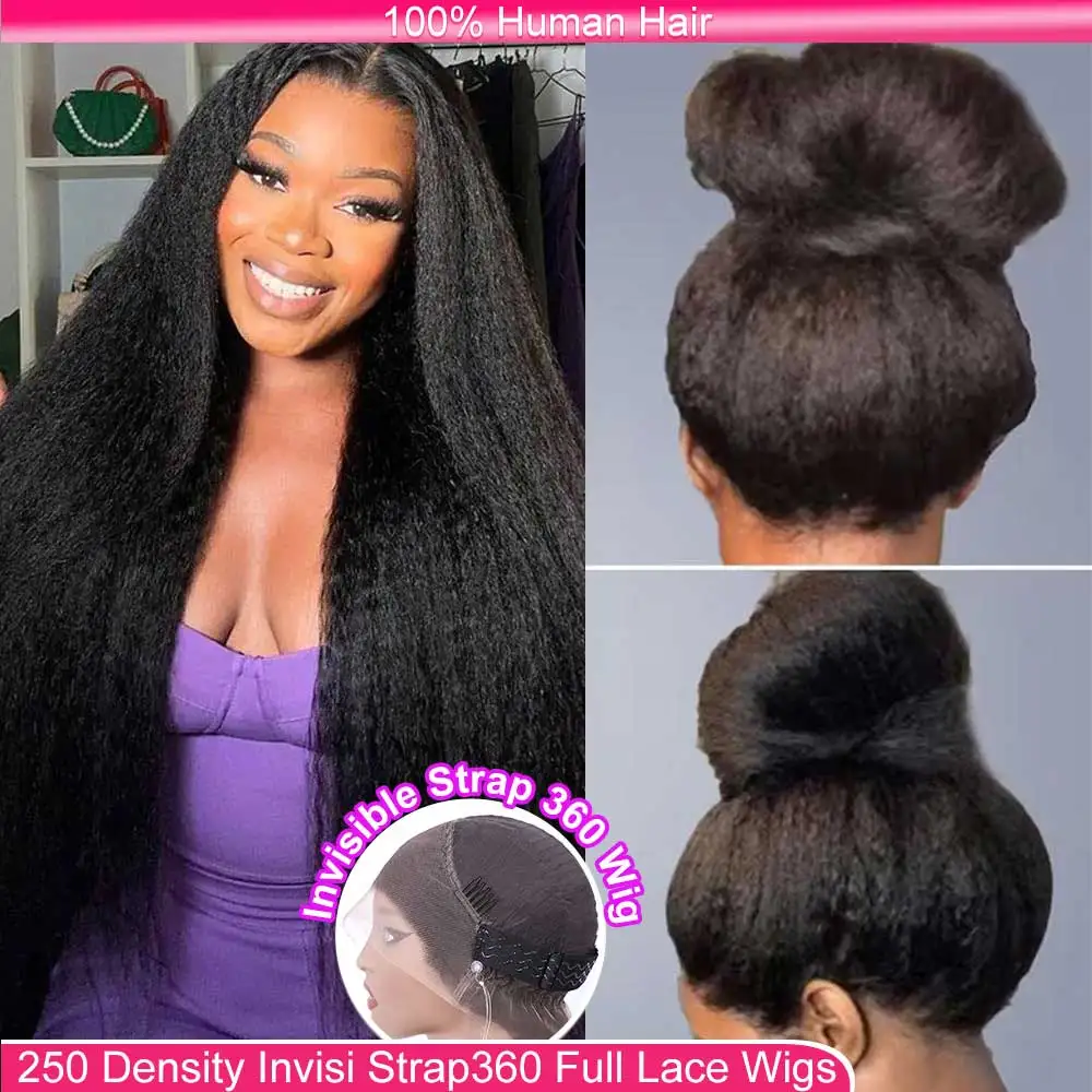 Invisi Strap 360 Full Lace Glueless Wig 250 Density Invisible Drawstring Frontal Wig Kinky Straight Lace Front Human Hair