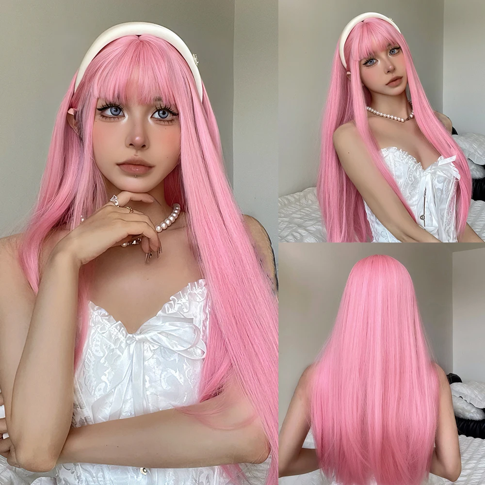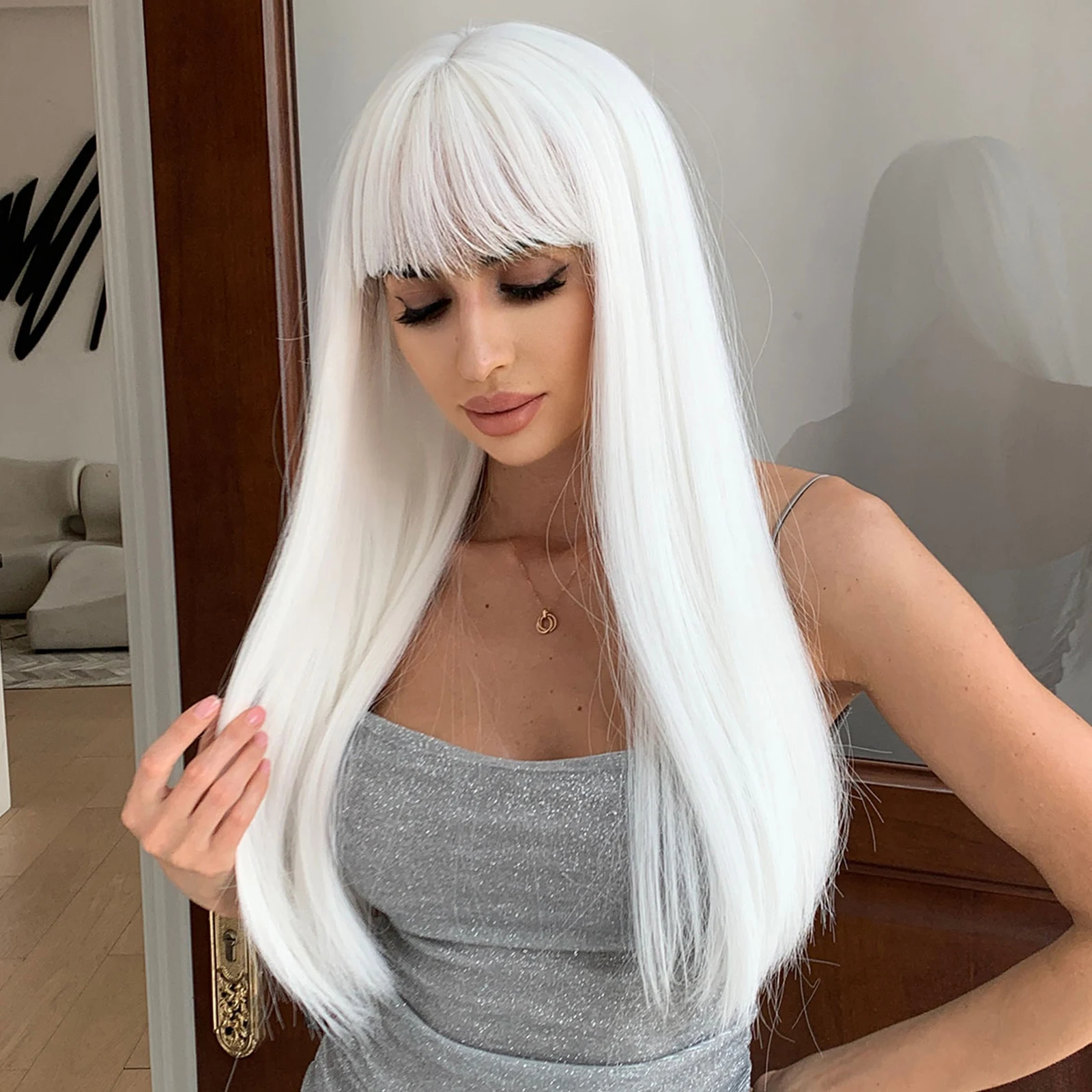 LOUIS FERRE Straight White Synthetic Wigs for White Women Long White Natural Hair Wigs with Bangs Heat Resistant Wigs for Daily