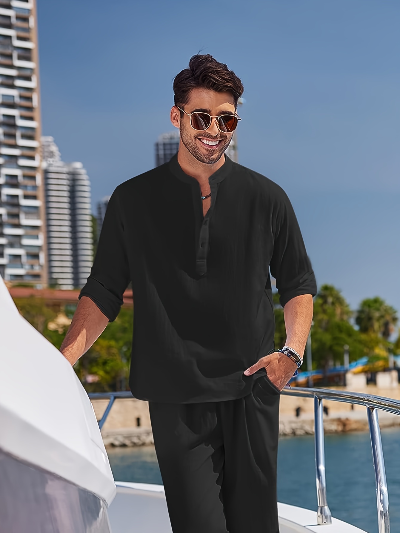 · Retro Henley style with long sleeves for a stylish and comfortable look