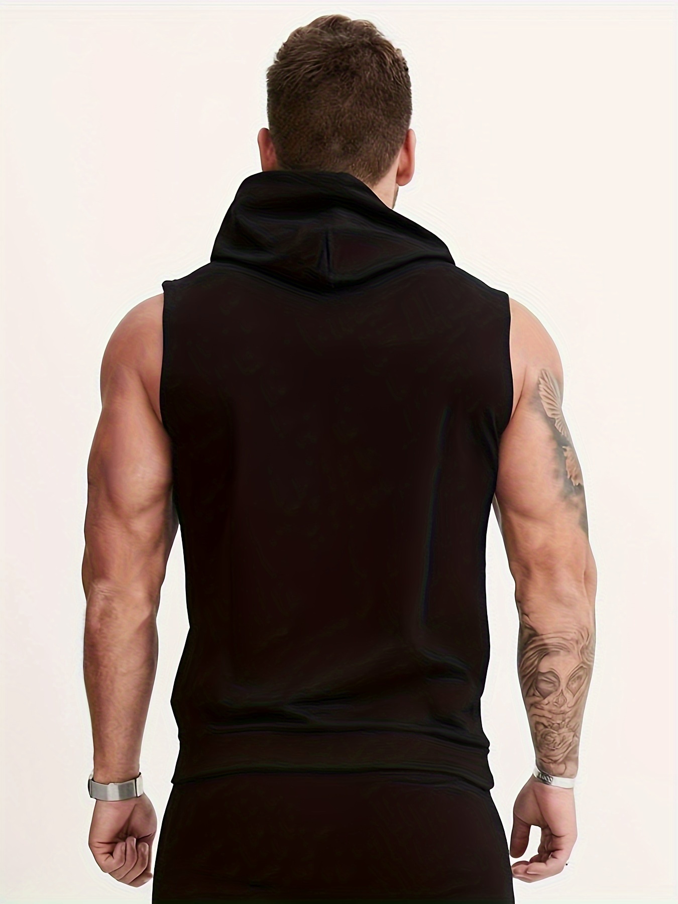 Men's Solid Tank Top, Active Quick Dry Comfy Breathable Crew Neck Sleeveless Hooded Shirt, Men's Clothing For Summer Outdoor