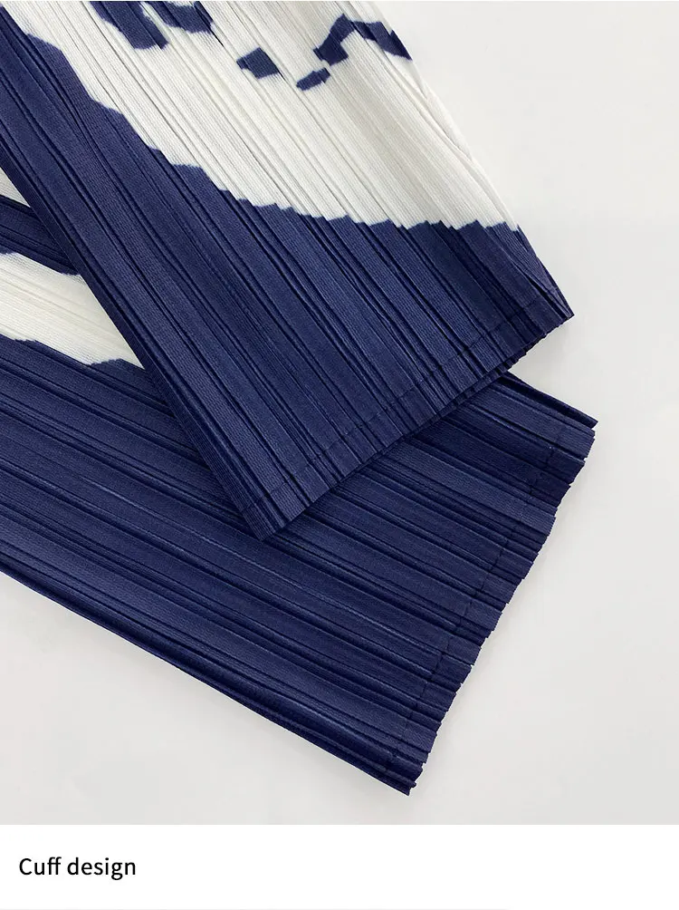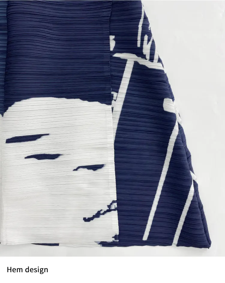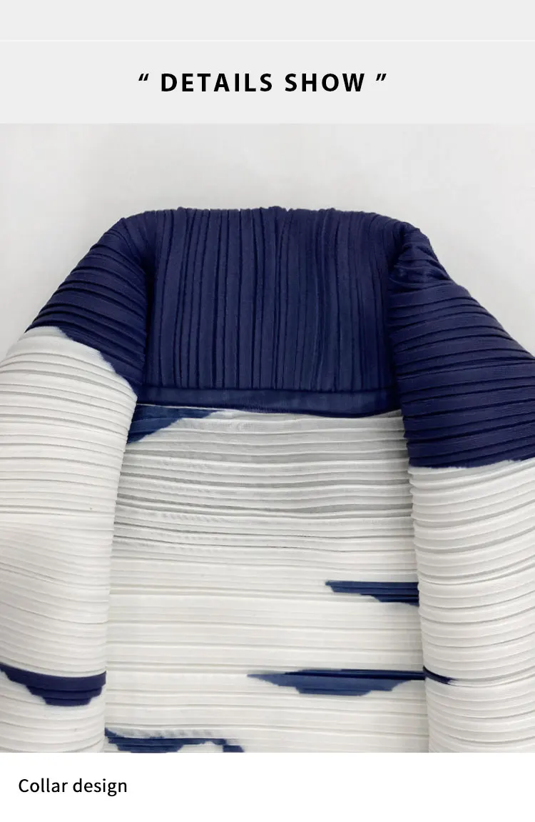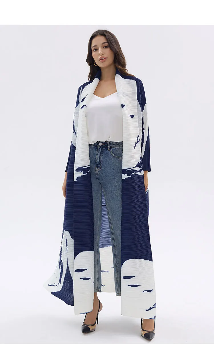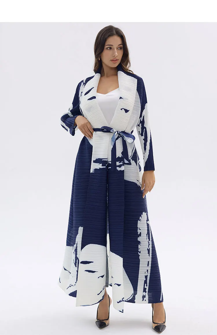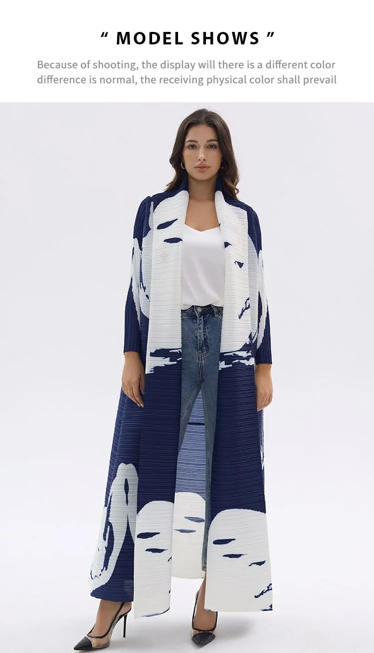 Miyake Pleated Long Sleeve Printed Dress Windbreak Women 2024 Winter New Original Designer Abayas Turndown Collar Belted Coats
