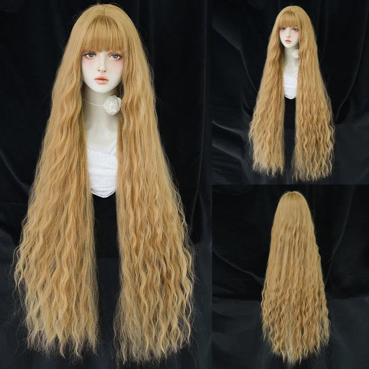 PARK YUN Long Curly Wave Ash Wig For Women Daily Use Cosplay High Density Synthetic Layered Wigs Natural Looking With Bangs