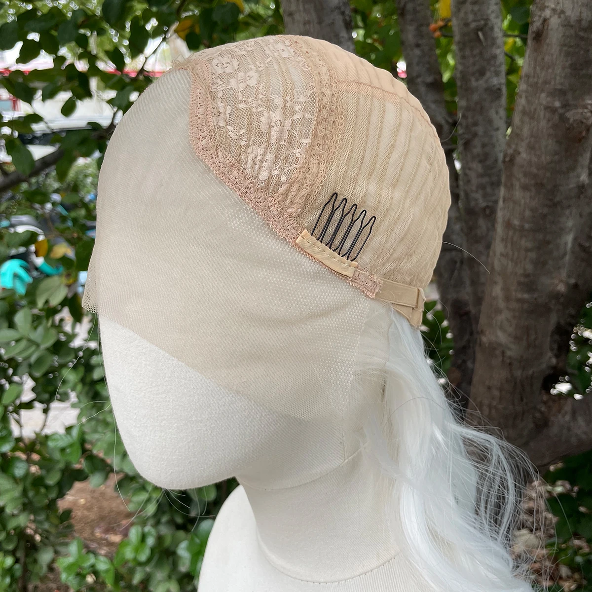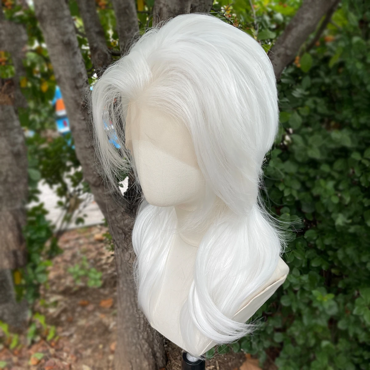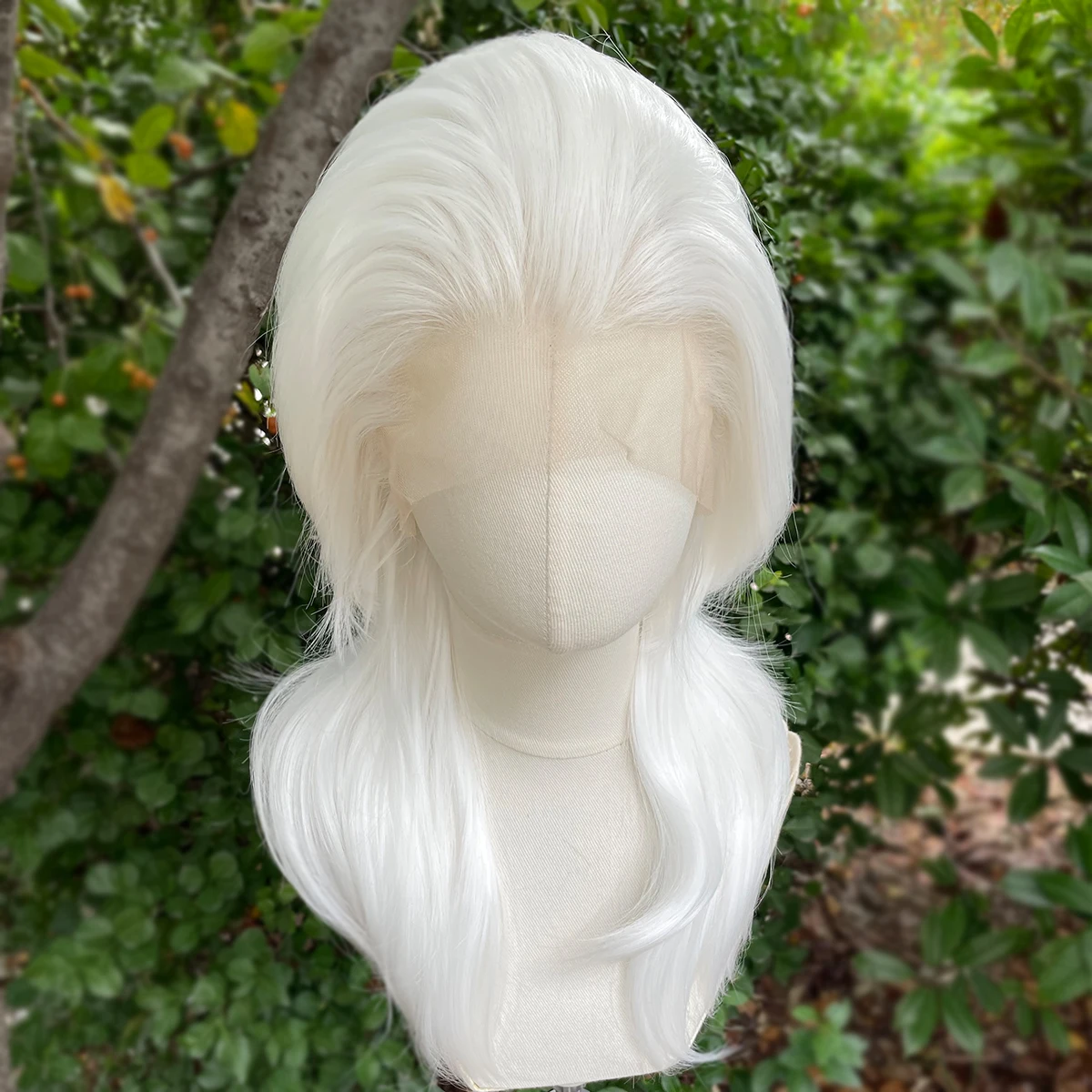 The white 13x4 synthetic lace front wig offers a natural hairline, providing a realistic and flattering look for any occasion.