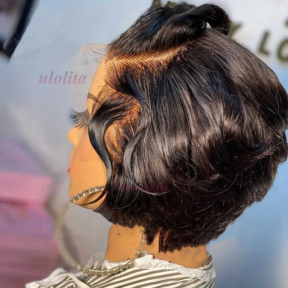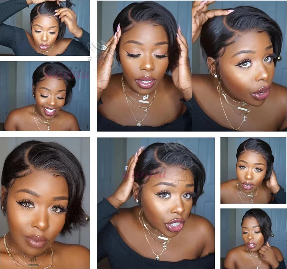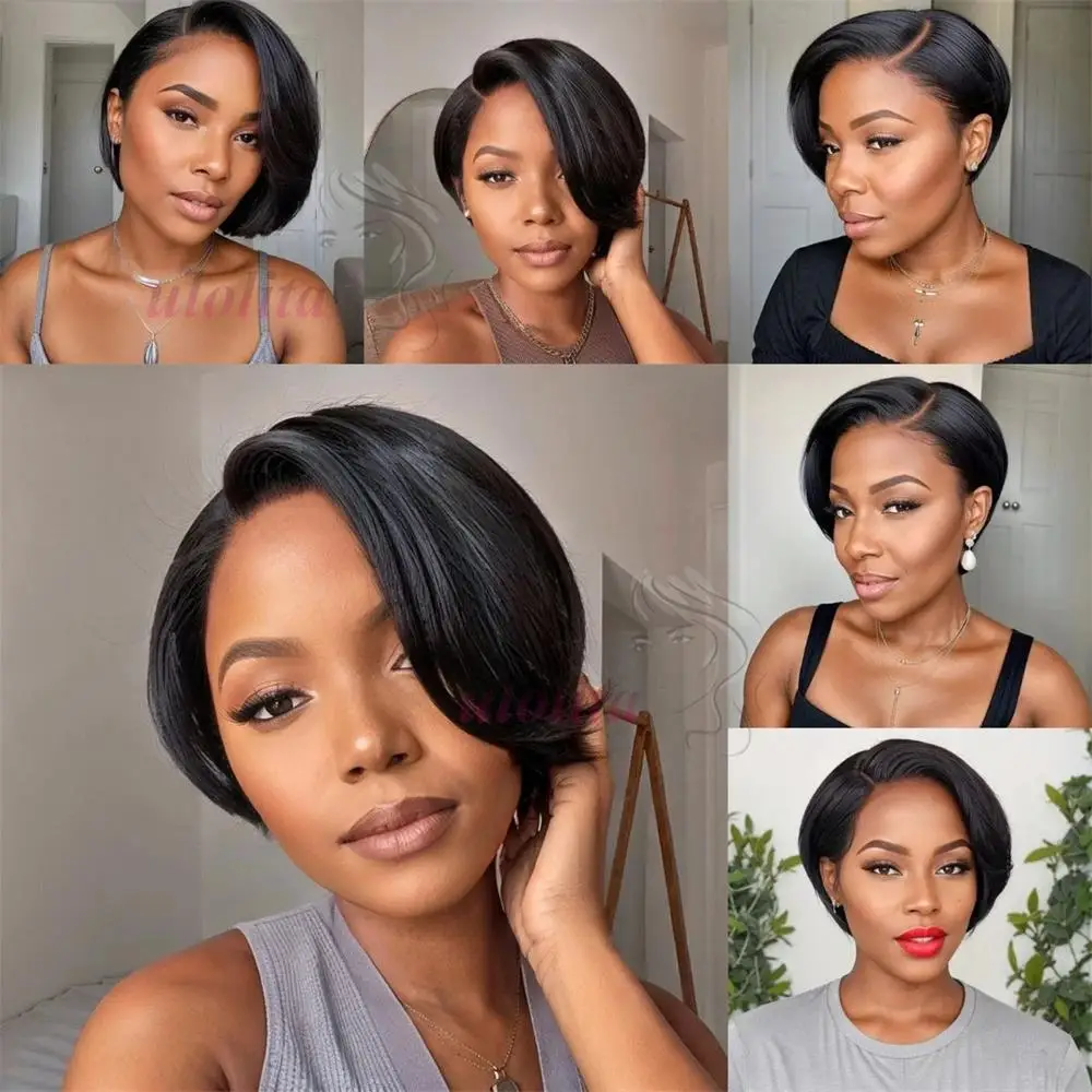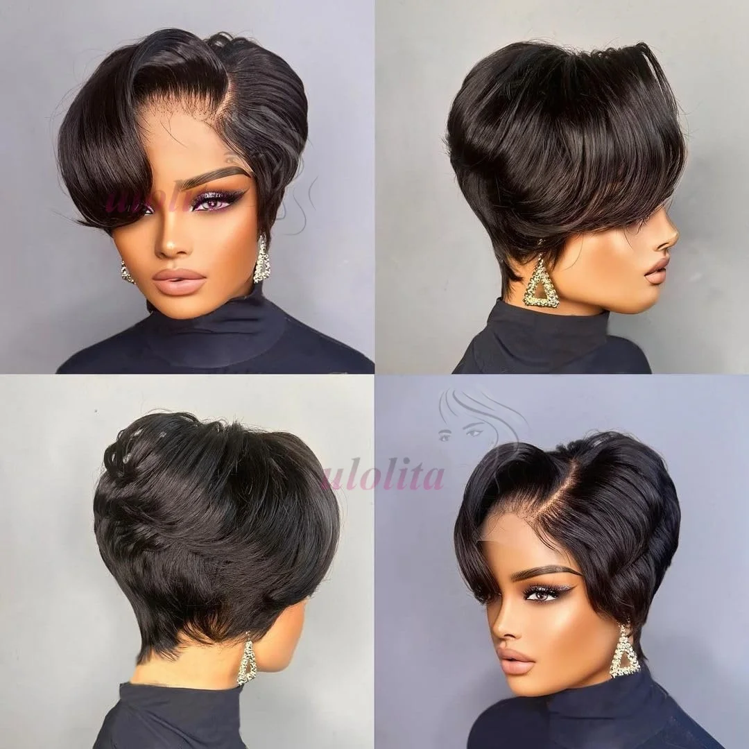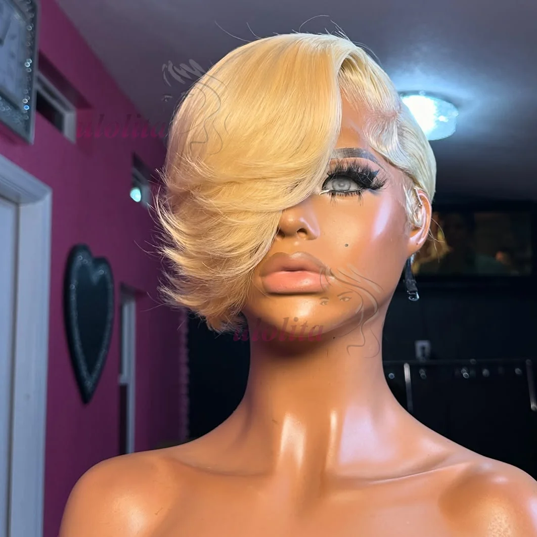 Pixie Cut Wig Brazilian 613 blonde Straight Side Part Wig 13x4 Short Bob HD Transparent Lace Front Human Hair Wig For Women