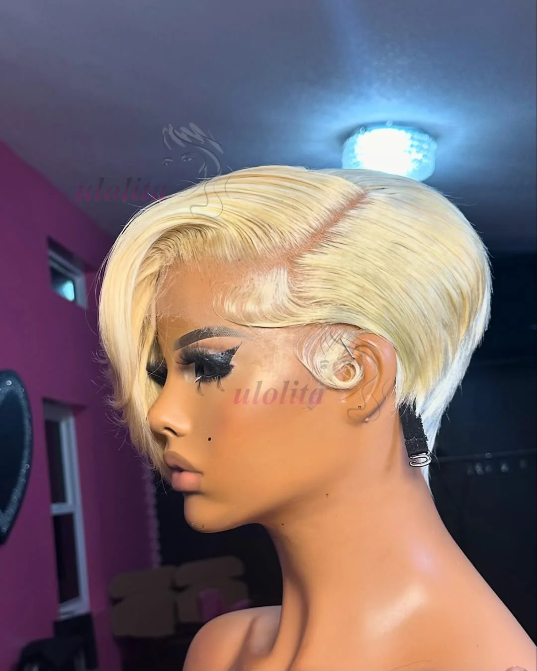 Color: Elegant Blonde Pixie Cut Lace Front Wig