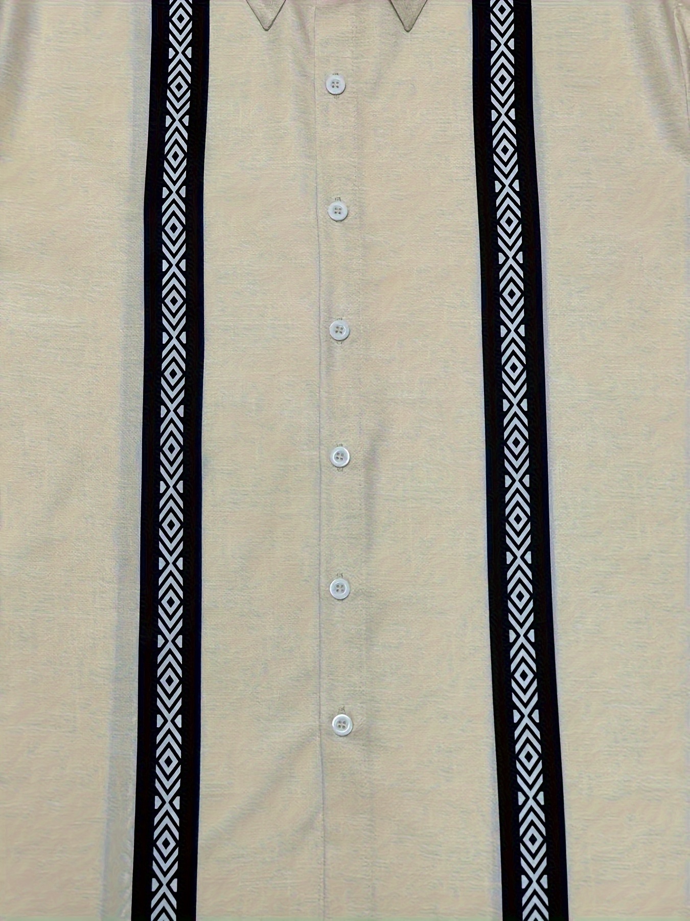 Plus Size Men's Stripes Print Shirt Fashion Casual Short Sleeve Shirt, Men's Clothing