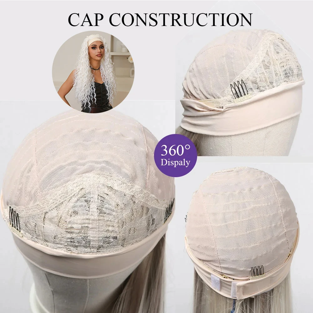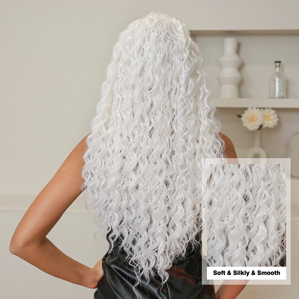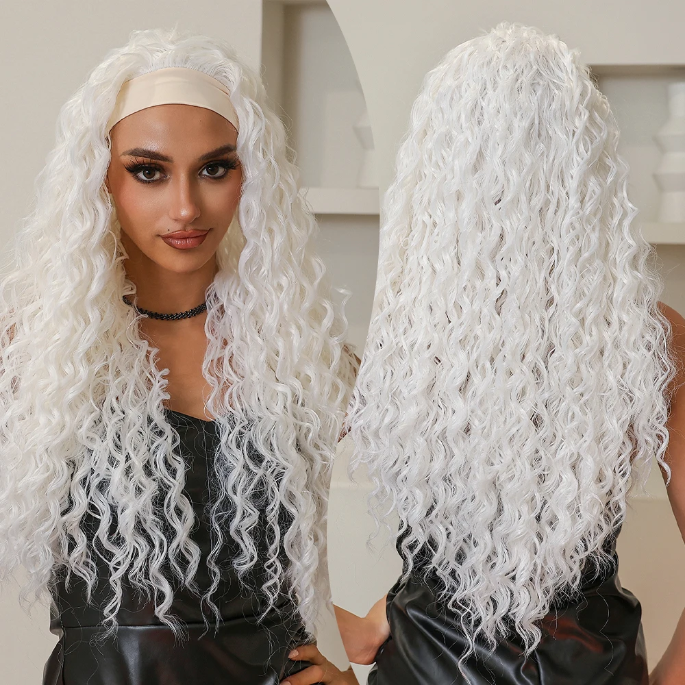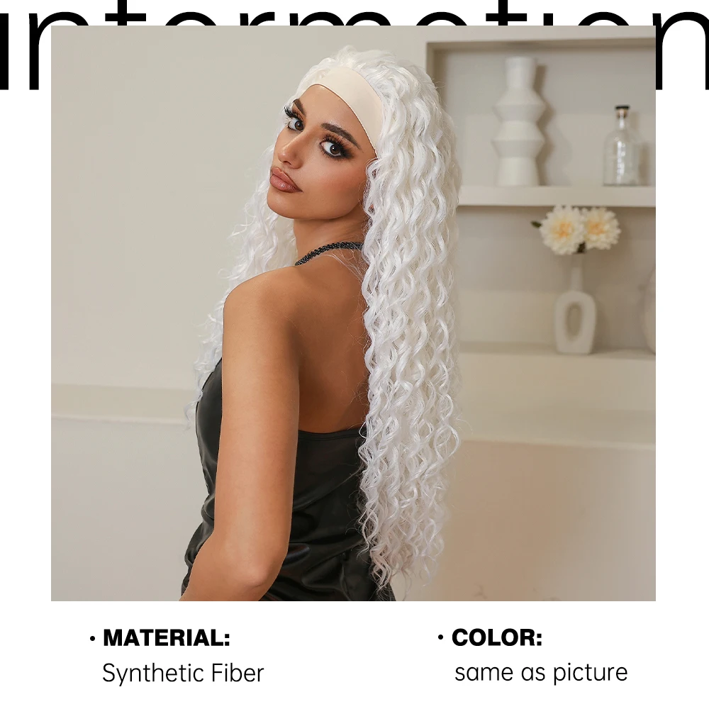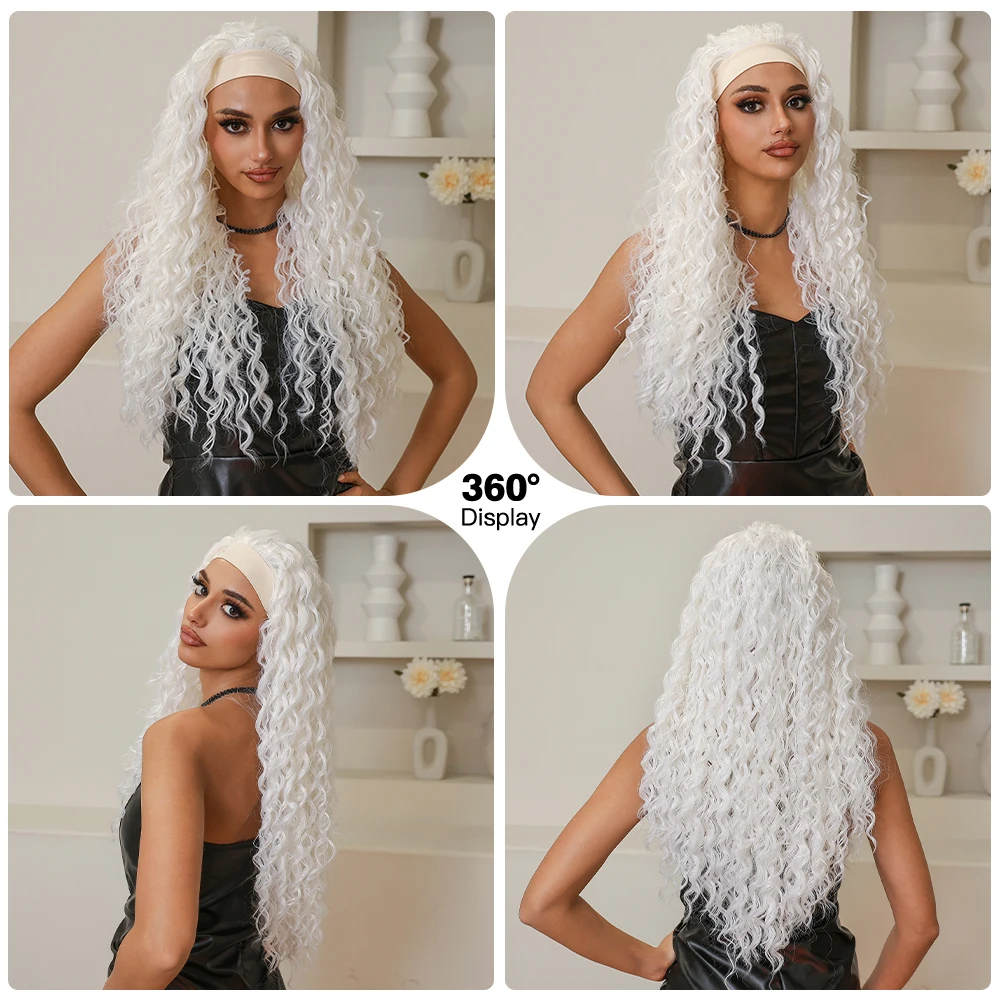 White Platinum Wig Afro Kinky Curly Headband Synthetic Wigs Long Water Wave Curl Wigs Halloween Party Wig for Black Women Daily