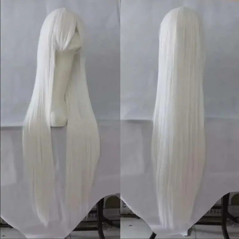 White Wig 100 CM/40 Inches Long Hairpiece Synthetic Heat Resistant Fiber Hair Salon Party Cartoon Cosplay Straight Hair