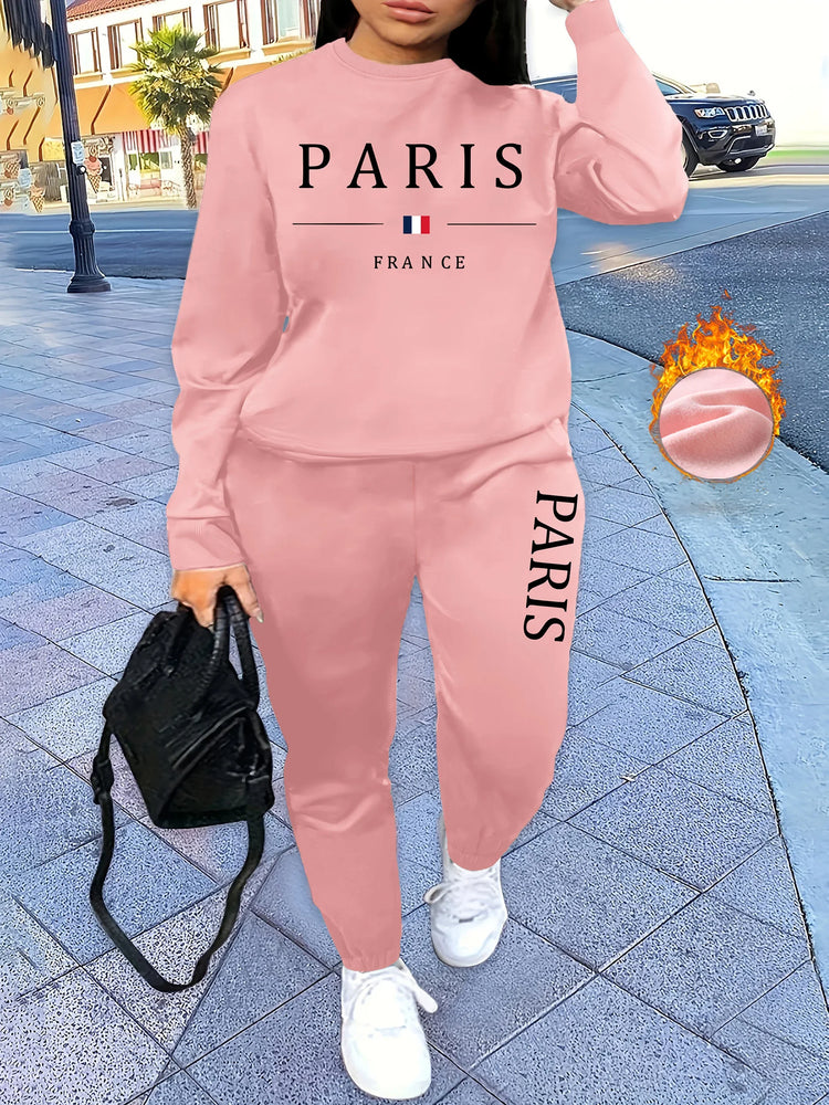 Womans Tracksuit Two-piece Set: Hooded Sweatshirt + Sports Pants. Ladies' Casual Jogging Round-neck Pullover Shirt. Fashionable