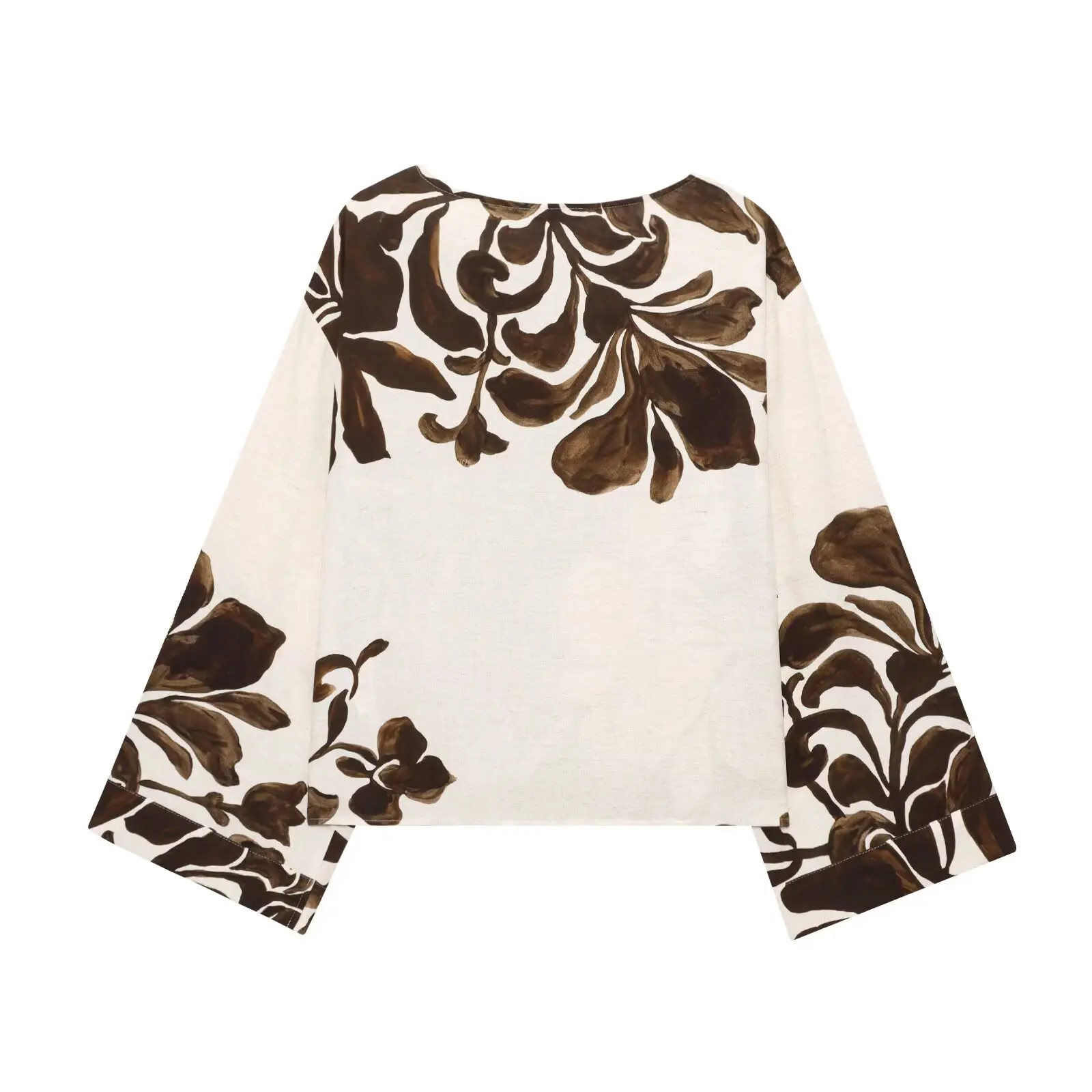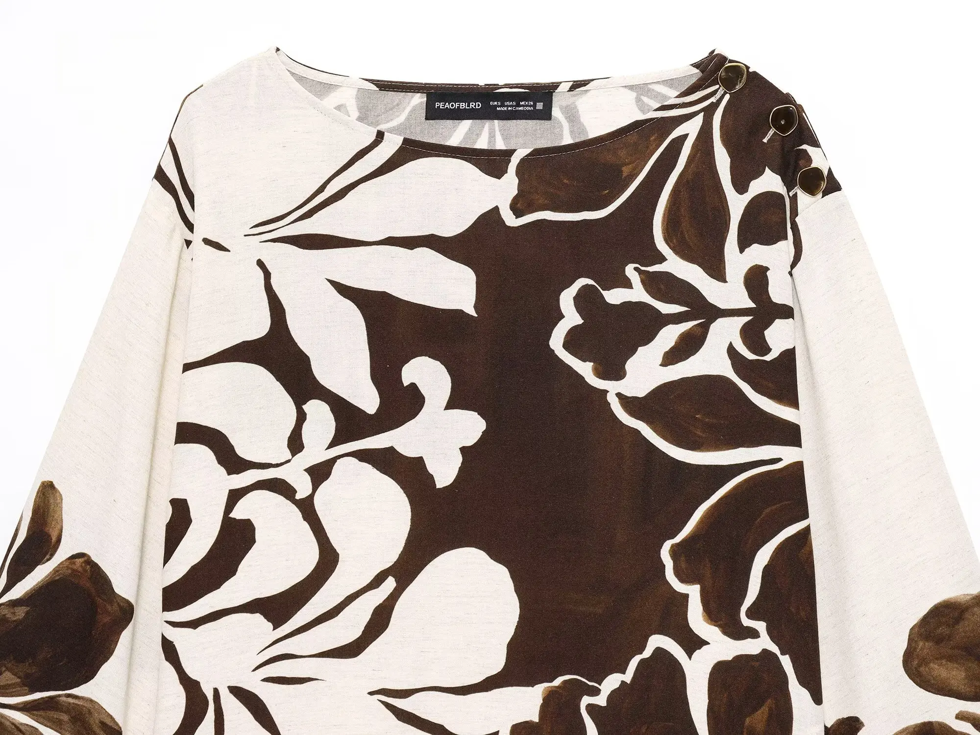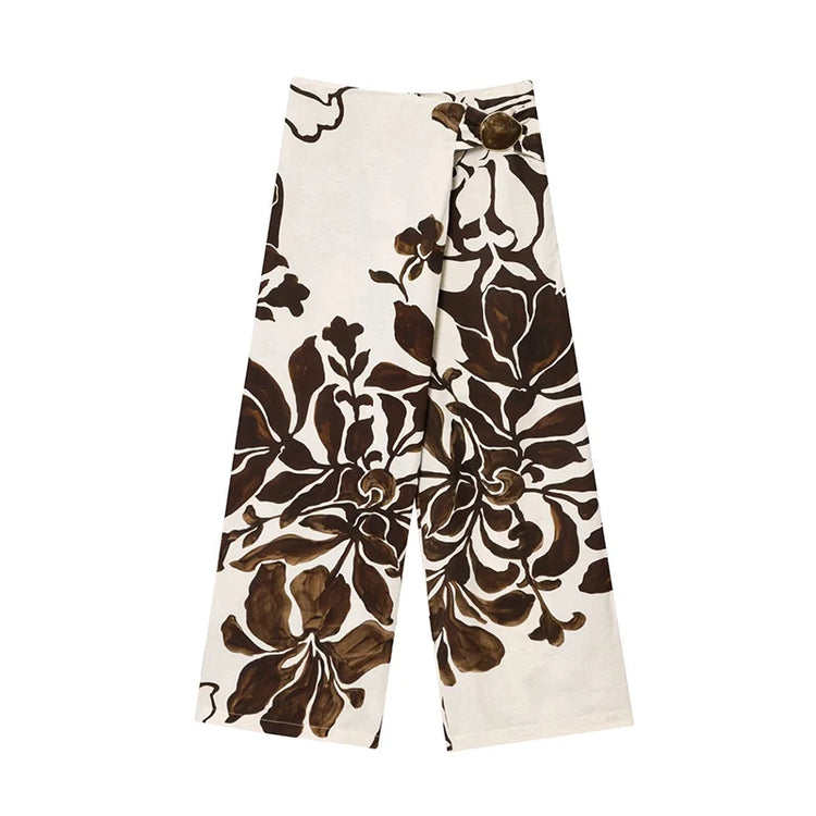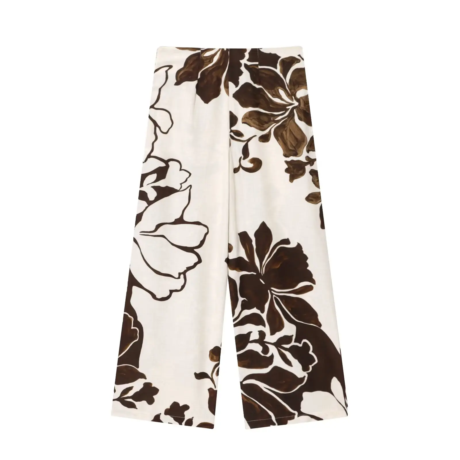 Women 2 Pieces Sets 2025 New Fashion Flower Printed Top Long Pants Set Women's Suit Streetwear Casual Woman Outfits