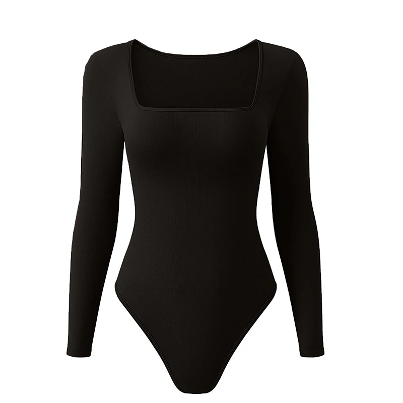 Women Jumpsuit Tops Solid color Slim Beach bodycon Bodysuits Clothes Solid Sexy One-pieces Square-Neck y2k Long Sleeved Clothing