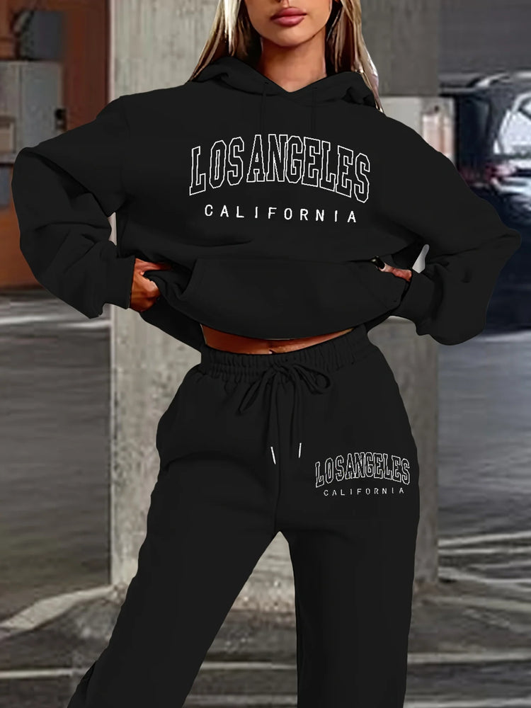 Women's Hoodie+Sweatpants Set Hip Hop Street Casual Los Angeles California Printed Loose Sweatshirt Autumn Fleece Warm Clothing