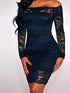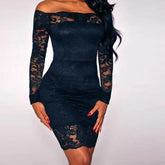 Solid Lace Patchwork One Line Neckline Tight Fitting Buttocks Skirt for Women's Sexy Long Sleeved Dress