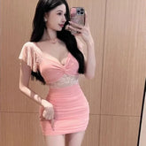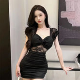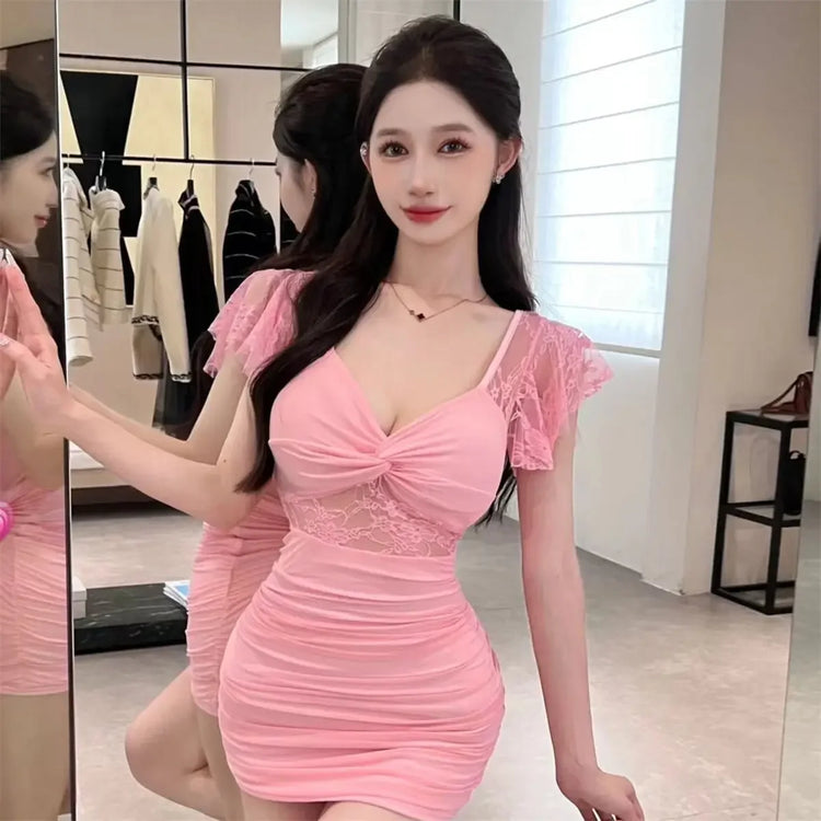 Lace Coquette Short Dresses for Women Sexy Tight Woman Dress Bodycon Mini Corset A Line Elegant Party High Quality Luxury Y2k