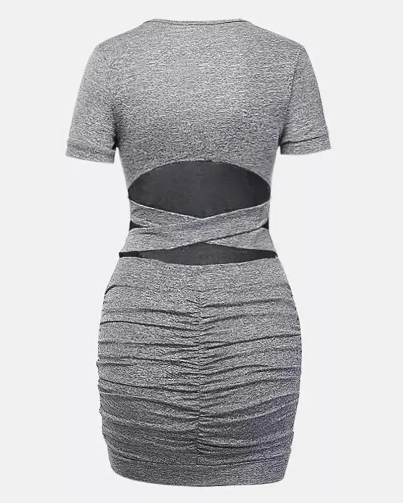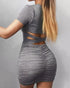 Women Commuting Style Dress 2024 Spring Summer Latest Casual Sexy Scoop Neck Short Sleeve Mini Dress Cutout Ruched Skinny Short