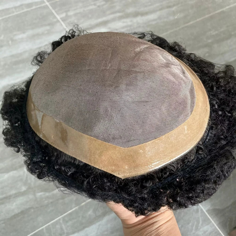 Breathable Mono Lace Top Human Hair Black Men's Hairstyle Cheap Toupee for Afro Men Hairloss Solution Prosthesis Hairpiece Unit