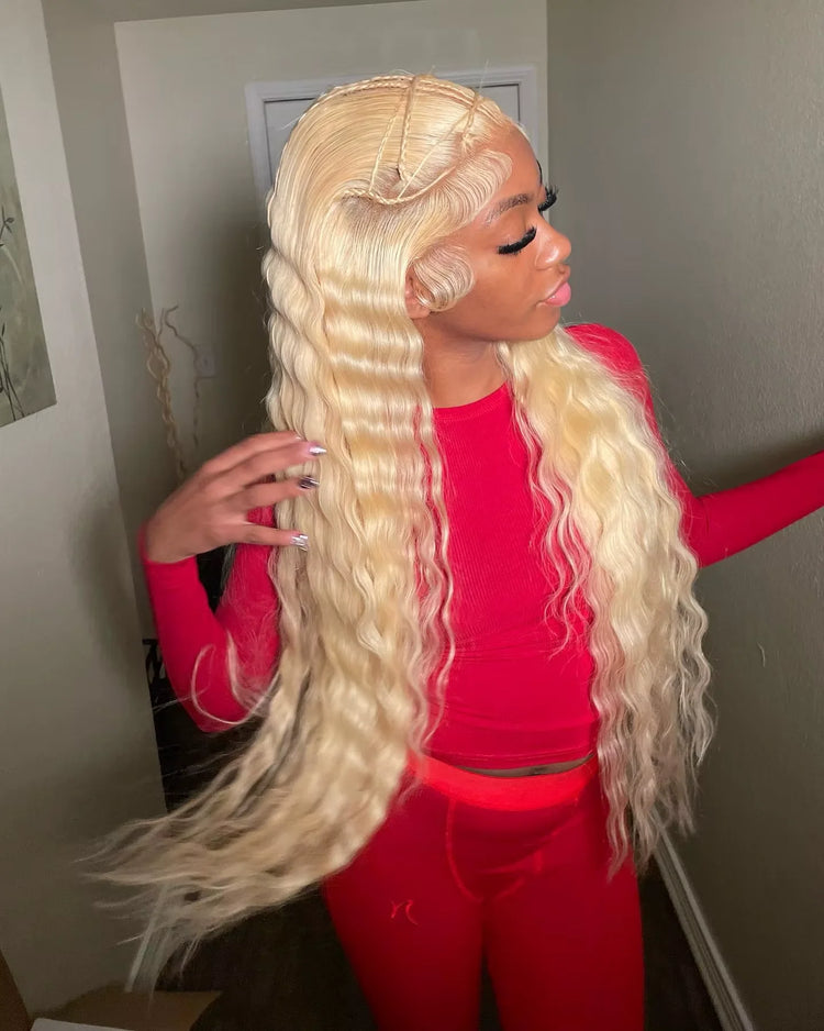 Deep Wave 13x6 HD Lace Frontal Human Hair Wig 30 40 Inch Curly 613 Honey Blonde Water Wave 13x4 Lace Front Wigs For Women 250%