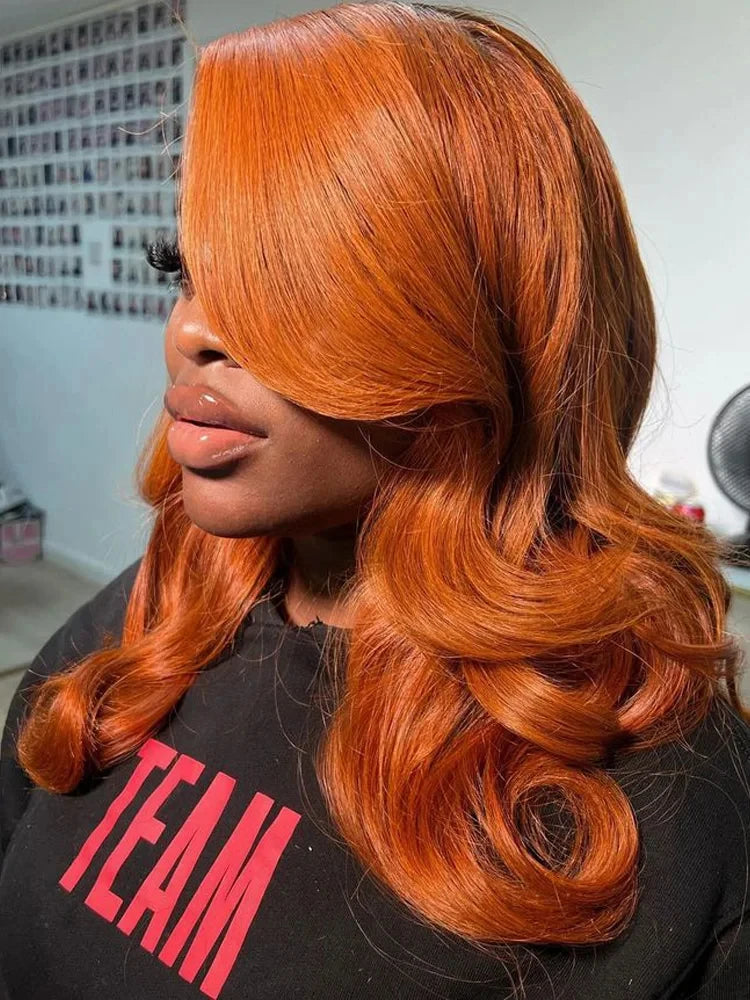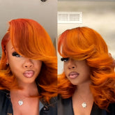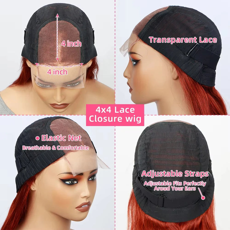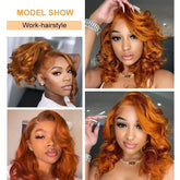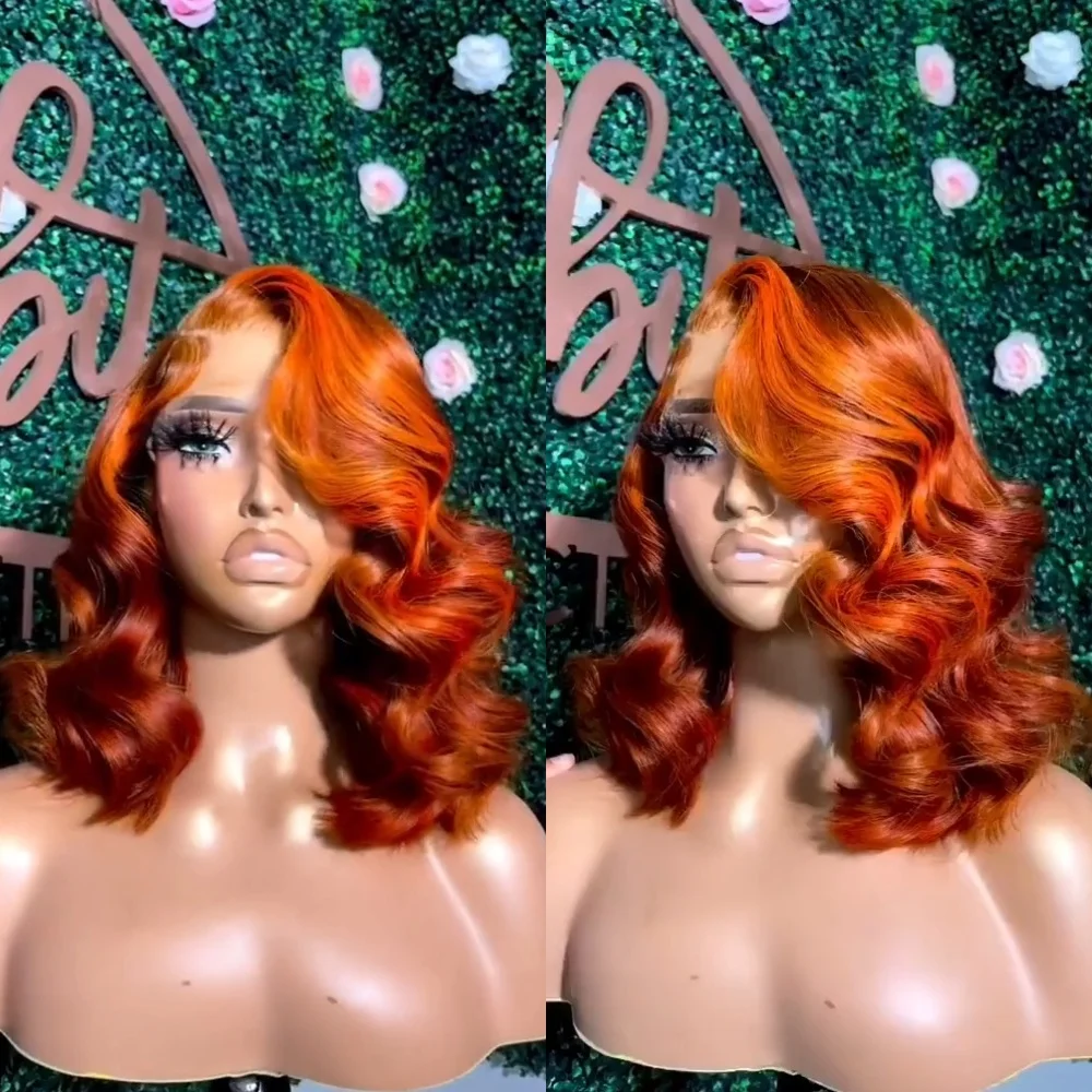 Ginger Wig Human Hair Orange Body Wave Bob Wig Glueless Wig 4x4 Hd Bob Lace Frontal Closure Wigs Human Hair Pre Plucked #350
