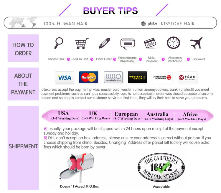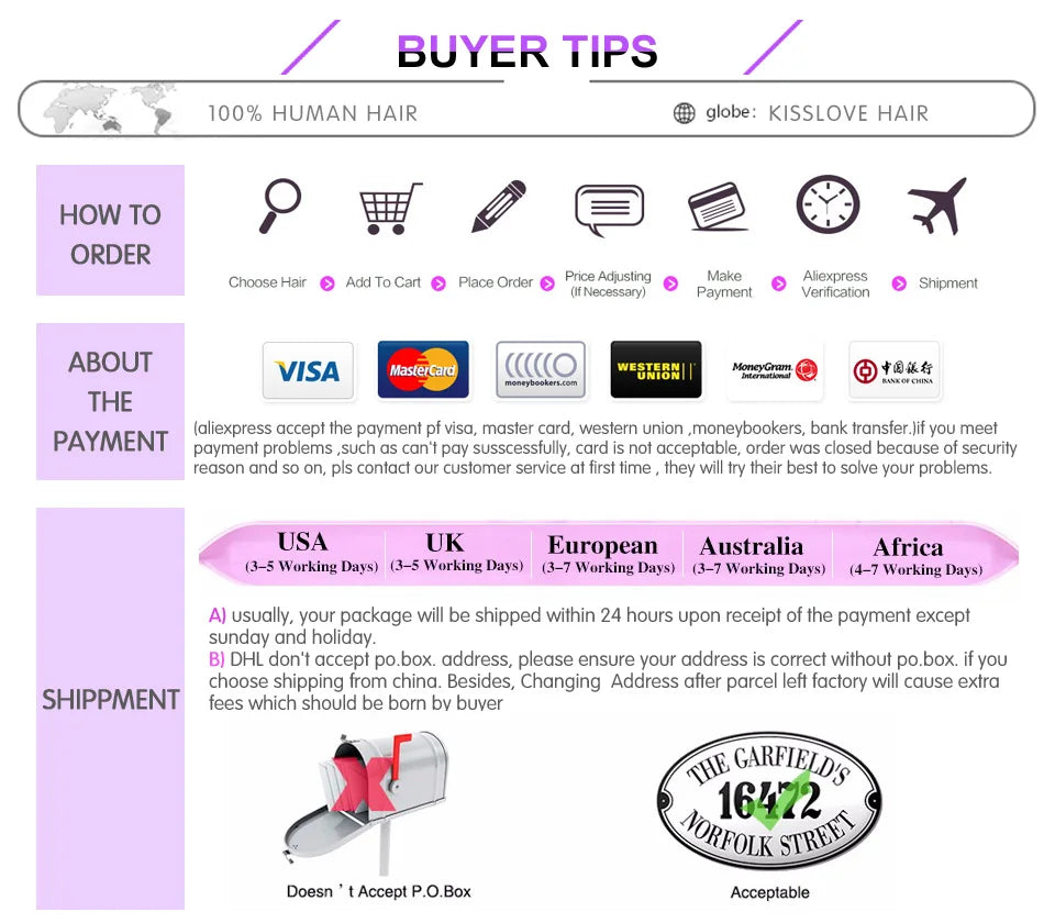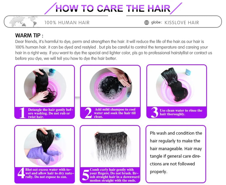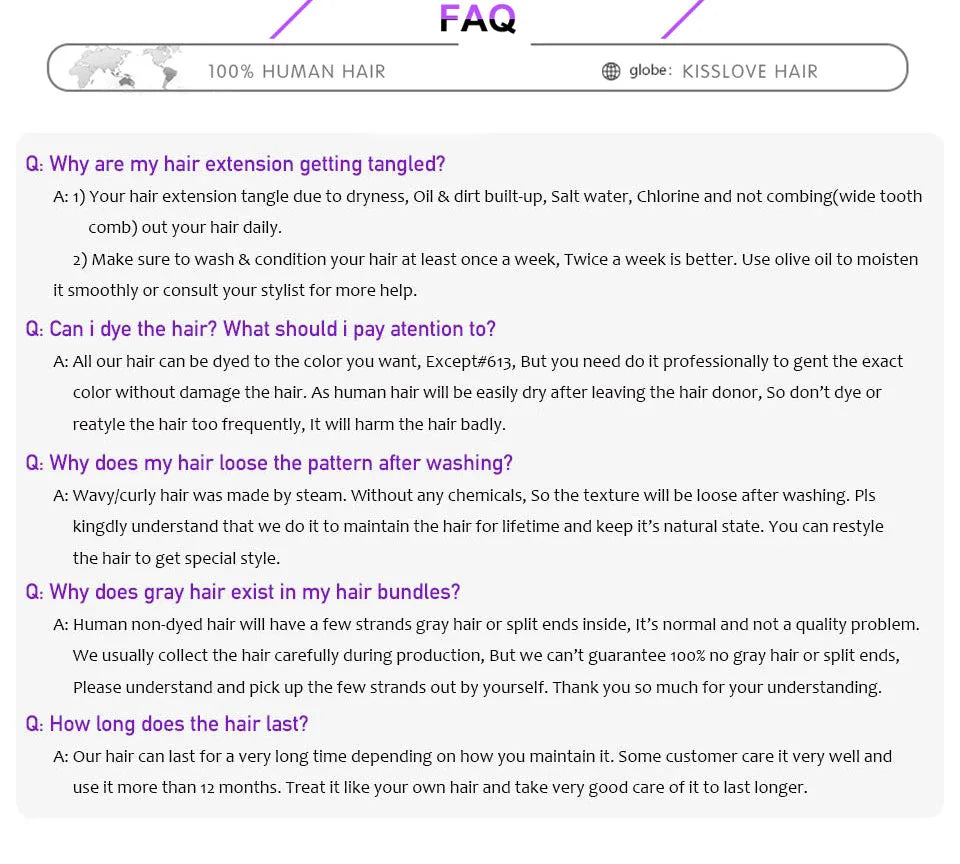 ♥ Hair Material: Best selected unprocessed natural 100% human hair