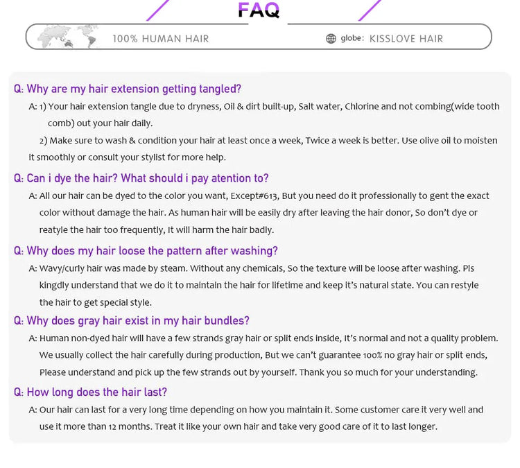 Hair Lifespan: No Tangle No Shedding,12-24 Months Life with Proper Care