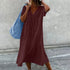 2025 Solid Color Cotton Linen Midi Dresses Women Fashion Casual V-neck Short Sleeves Loose Dress Simple Style Lady Commuting
