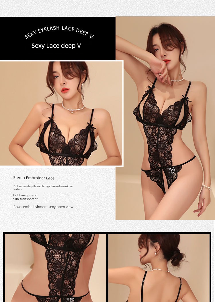 Long Night Sexy Intimates off-Free Open One-Piece Nightdress Sexy Lace Sling Open Crotch off-Free Pajamas Sexy