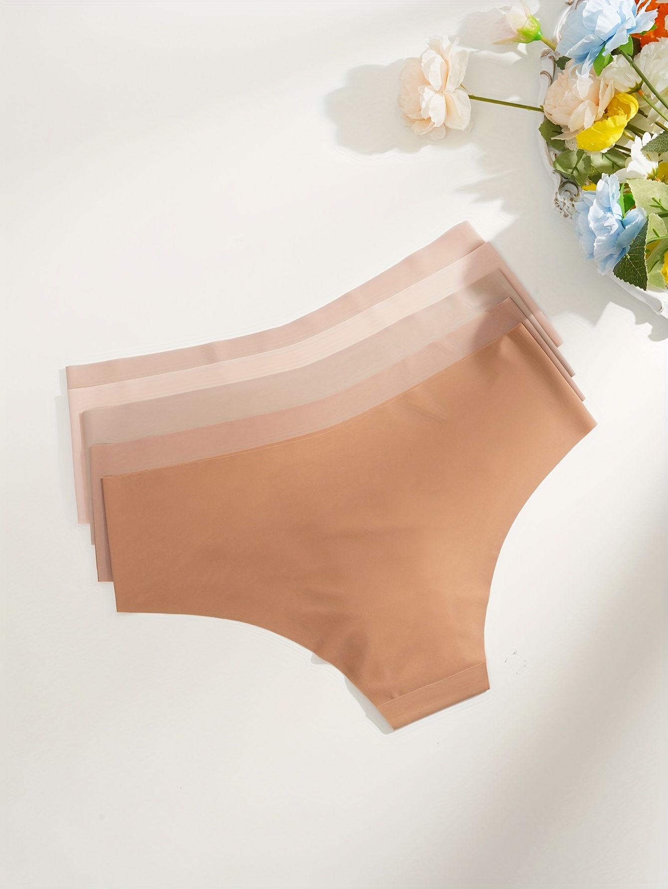 5pcs Simple Solid Hipster Panties, Comfy Seamless Low Waist Intimates Panties, Women's Lingerie & Underwear