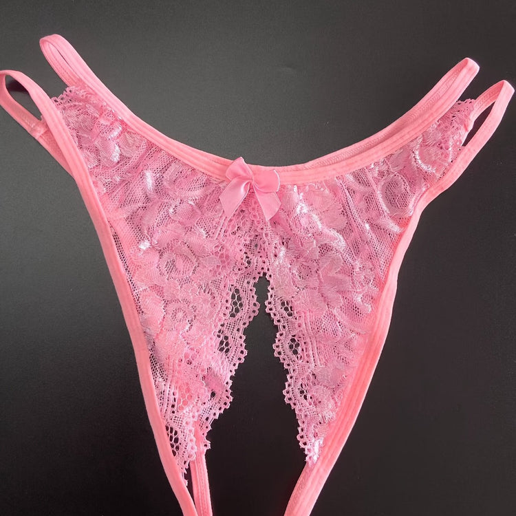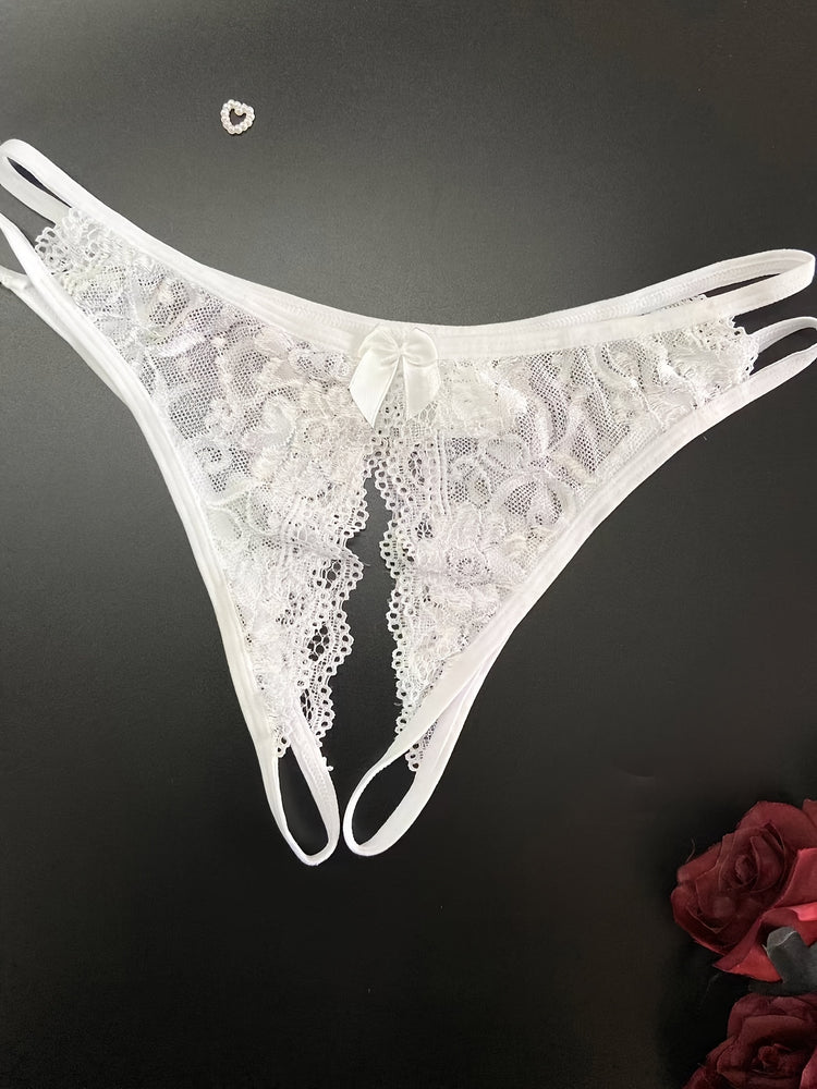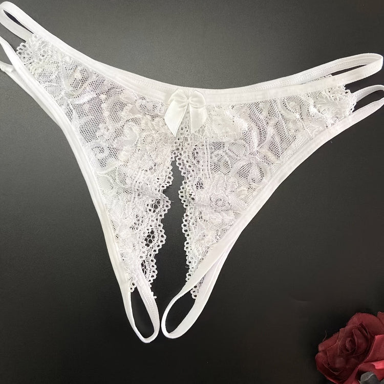 1/6 pcs Exquisite Floral Lace Mesh Thongs - Hollow Out Open Crotch Design, Breathable, Comfortable, Sexy Women's Lingerie & Underwear for Romantic Nights - Soft, Stretchy, and Delicate Fabric
