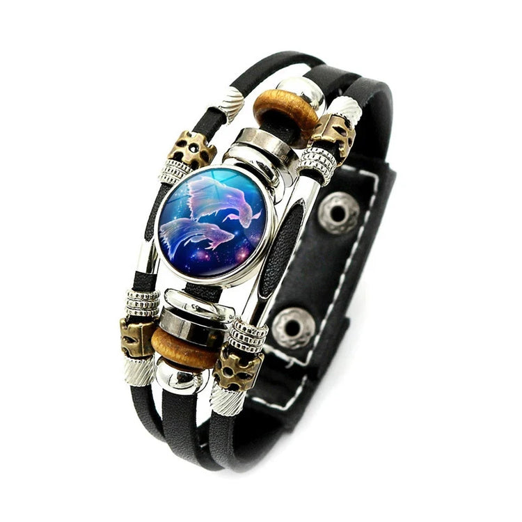 12 Constellation Leather Bracelet Zodiac Sign Glass Snap Button Bracelets For Men Women