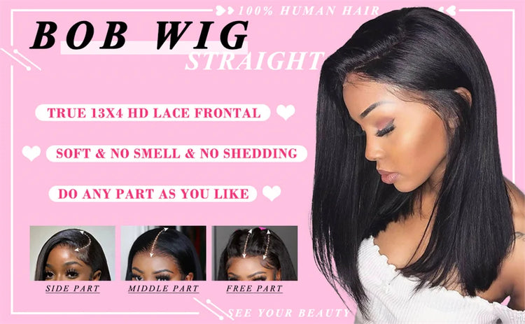 Lace Size: 13x4 Full Frontal Lace Wig,5x5 Lace Closure Bob Wig