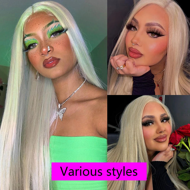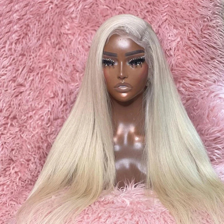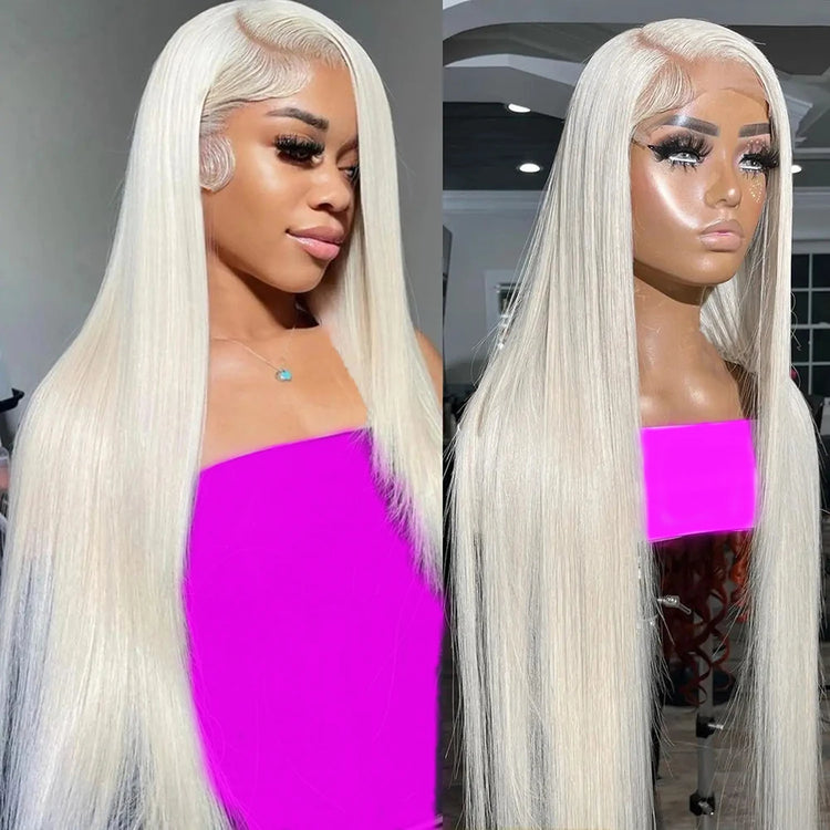 13x4 Platinum Blonde Lace Front Wig Platinum White Long Straight for Women Wig Synthetic Fiber Glueless Heat Resistent Hair Wigs
