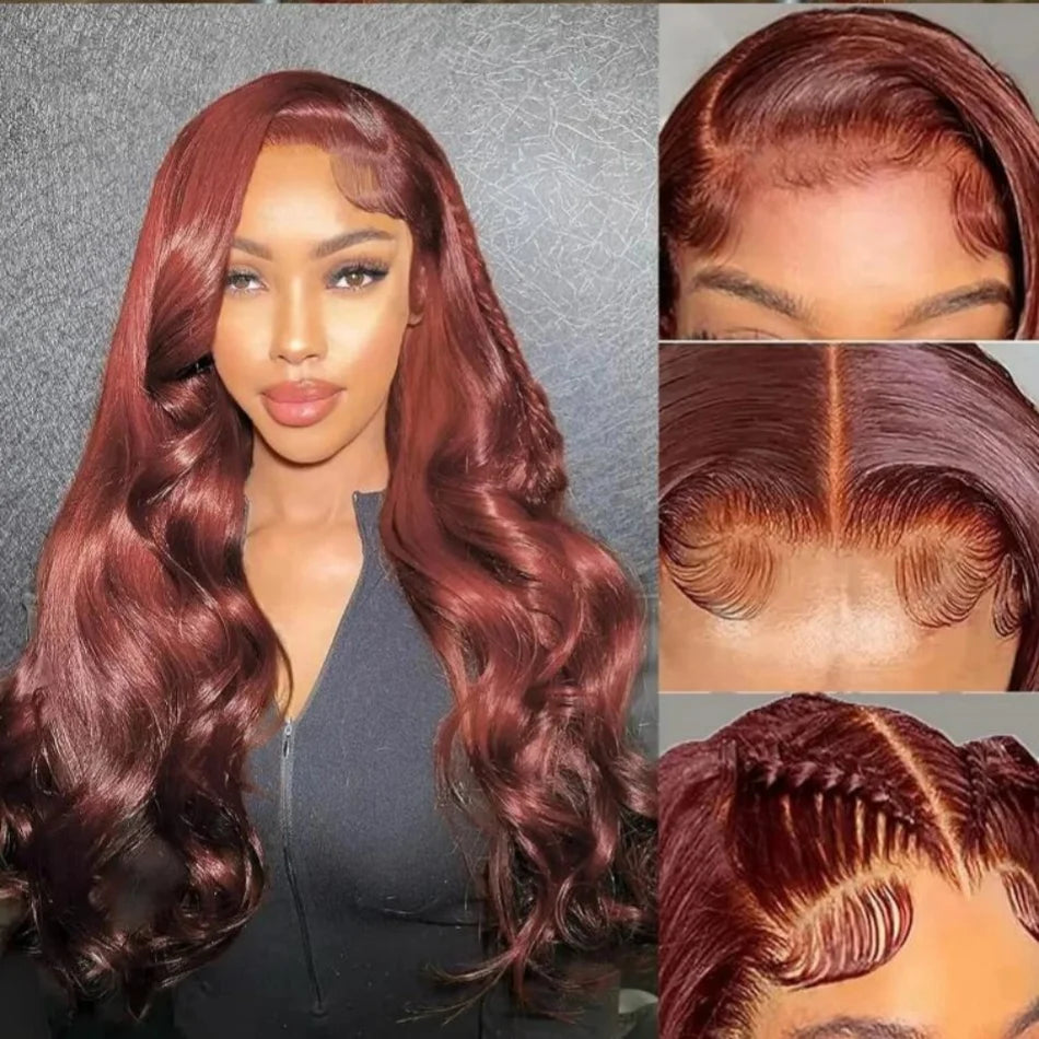 13x6 Reddish Brown Body Wave HD 13x4 Lace Frontal Human Hair Wig Colored Brazilian 100% Human Hair Wigs For Women Pre Plucked