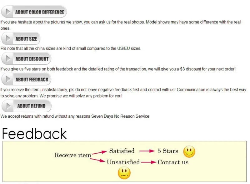 Use collapsible tabs for more detailed information that will help customers make a purchasing decision.