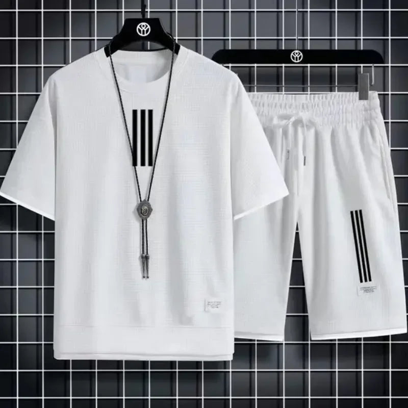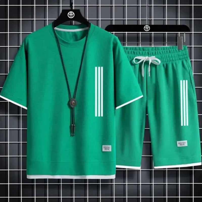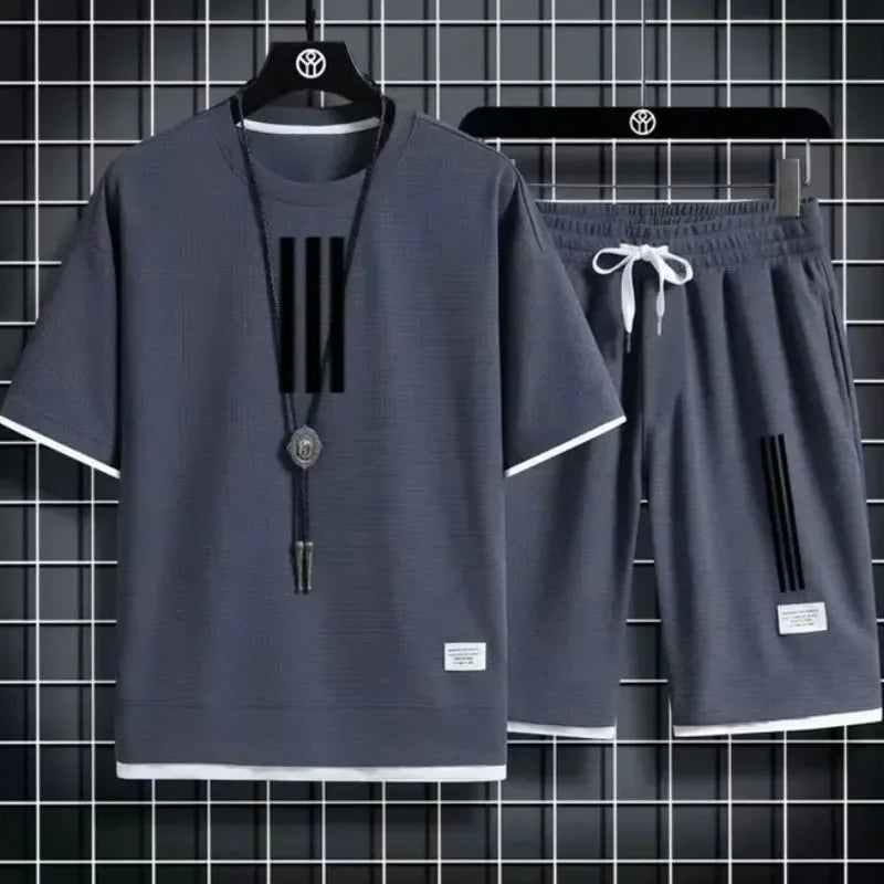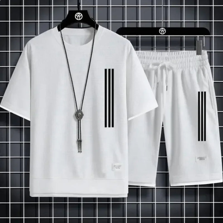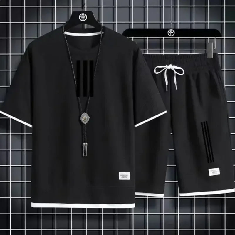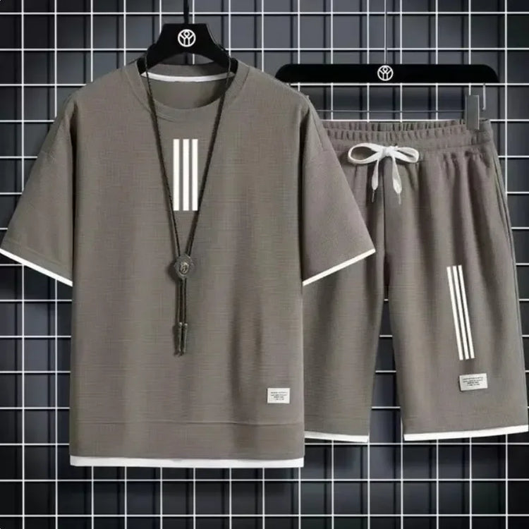 2025 Adida New Man Tracksuits 2 Piece Short Sleeve Suits Printing T-shirt +Sweatpants Sets Sutdent Casual Summer Sport Clothes
