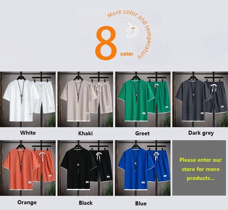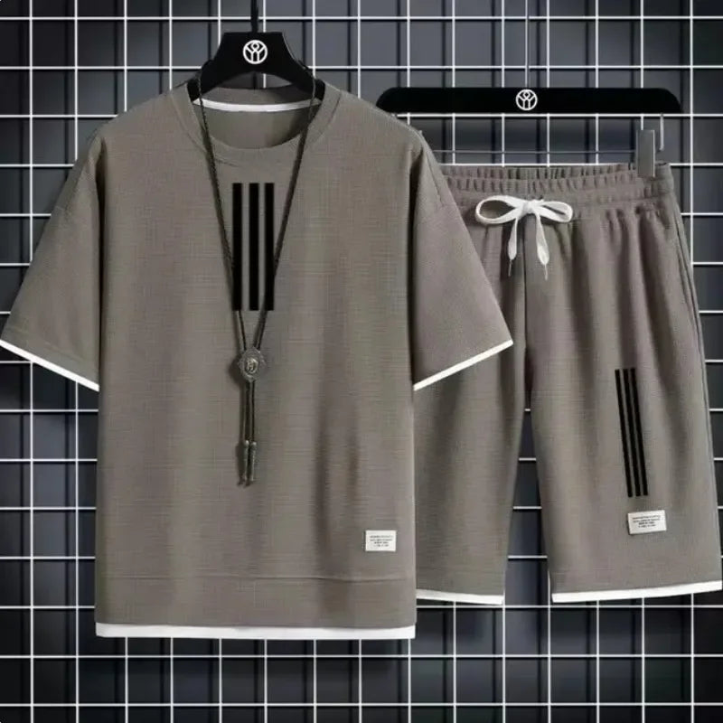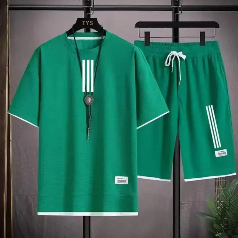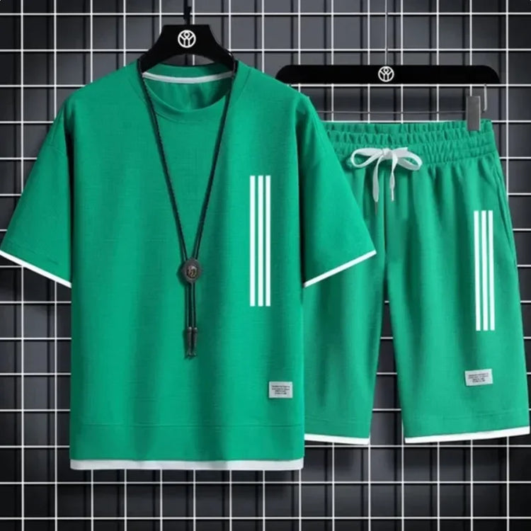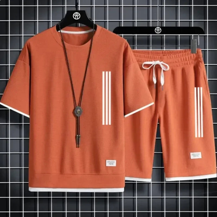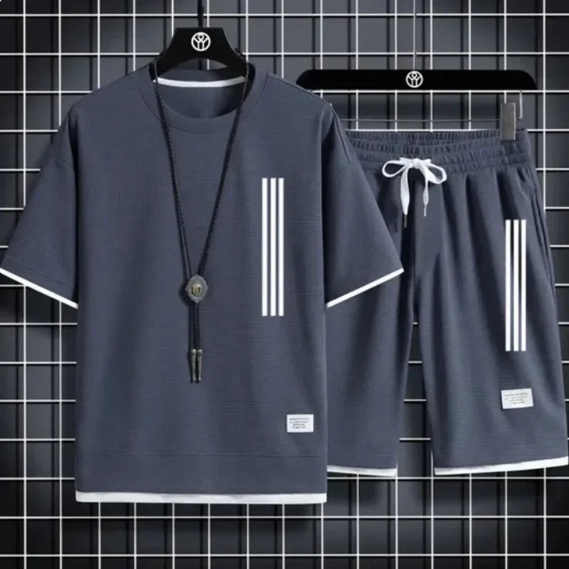 2025 Adida New Man Tracksuits 2 Piece Short Sleeve Suits Printing T-shirt +Sweatpants Sets Sutdent Casual Summer Sport Clothes