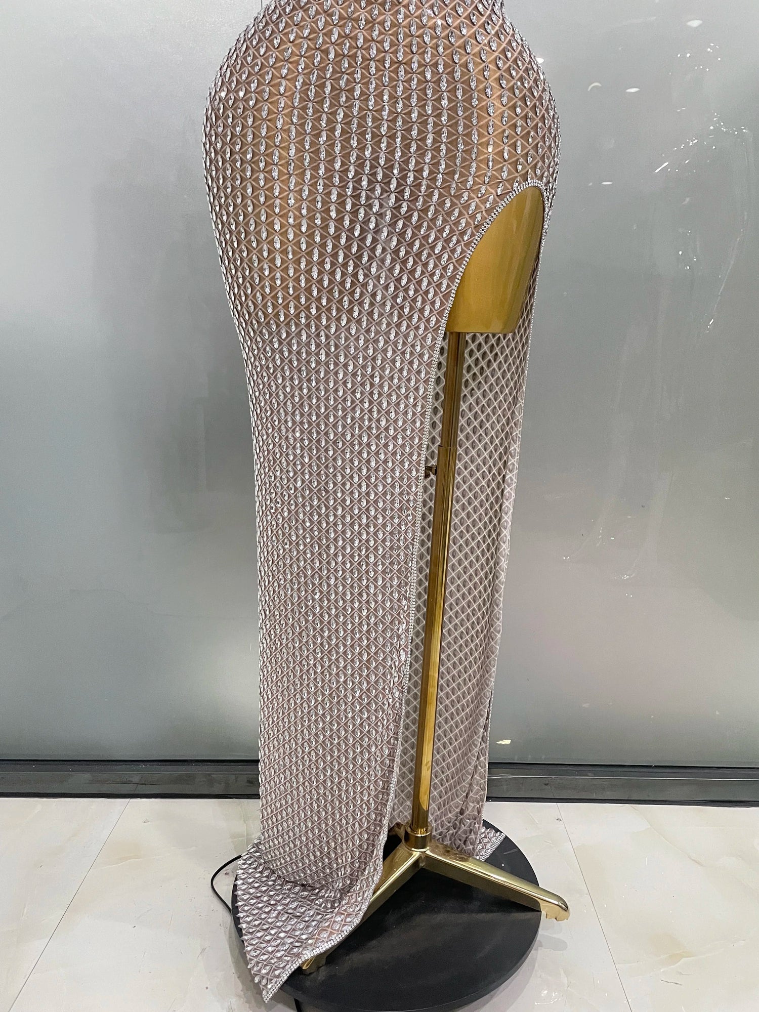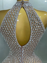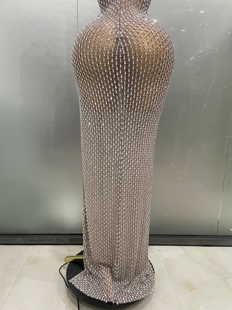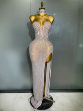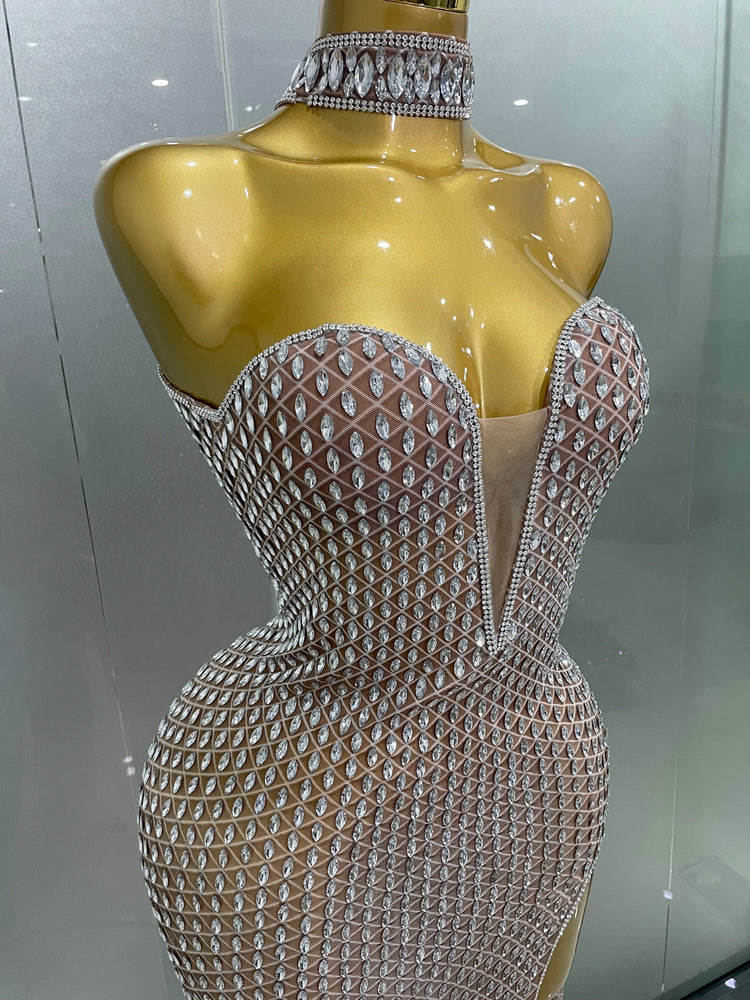 2025 Luxurious Full Rhinestones Mesh Transparent long dress Women Birthday Celebrate Evening Prom Dress party Club Stage Costume