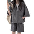 2025 New Hoodie Women Suits 2 Pcs Sets Sport Shorts Set Three-quarter Sleeve Loose Outfit Elastic Waist Lady Outdoor Tracksuit