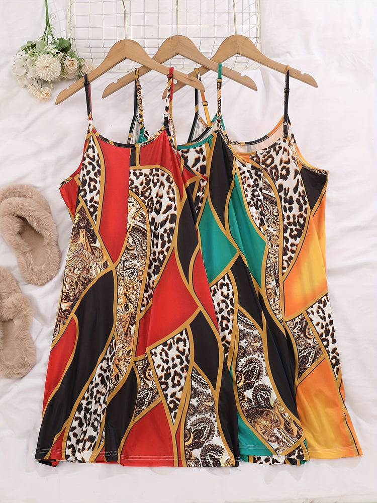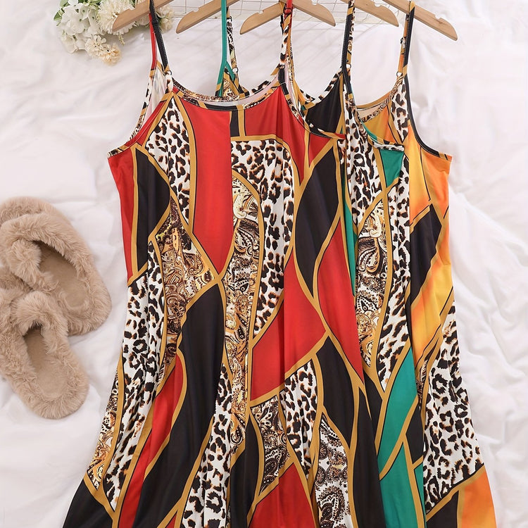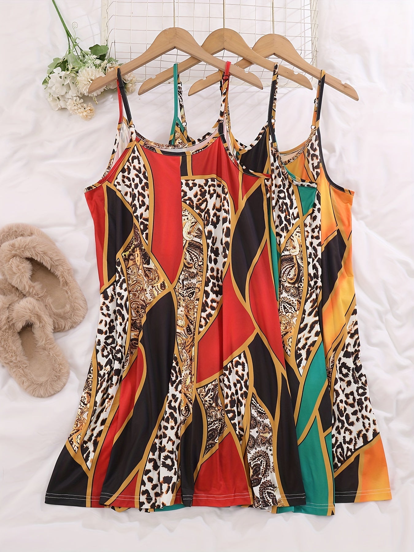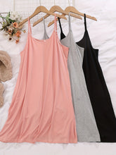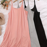 3 Pack Plus Size Cozy Nightdress Set - Women's Solid Plain Round Neck Cami Sleep Dresses with Three Piece Set, Soft Fabric, Comfortable Wear, and Relaxing Sleep Experience