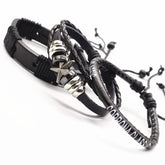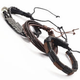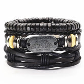 3 Pcs/Set Leather Bracelets Men Bangles For Women Wood Beads Feather TRUST IN GOD Cross Charm Homme Gift Jewelry Freely Shipping