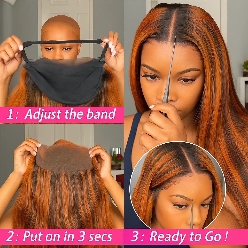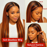 #4/350 Color Brown Mix Ginger Highlight Lace Closure Wig 5x5 Bone Straight Wear Go Glueless Wigs Human Hair Brazilain