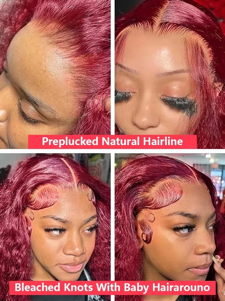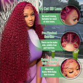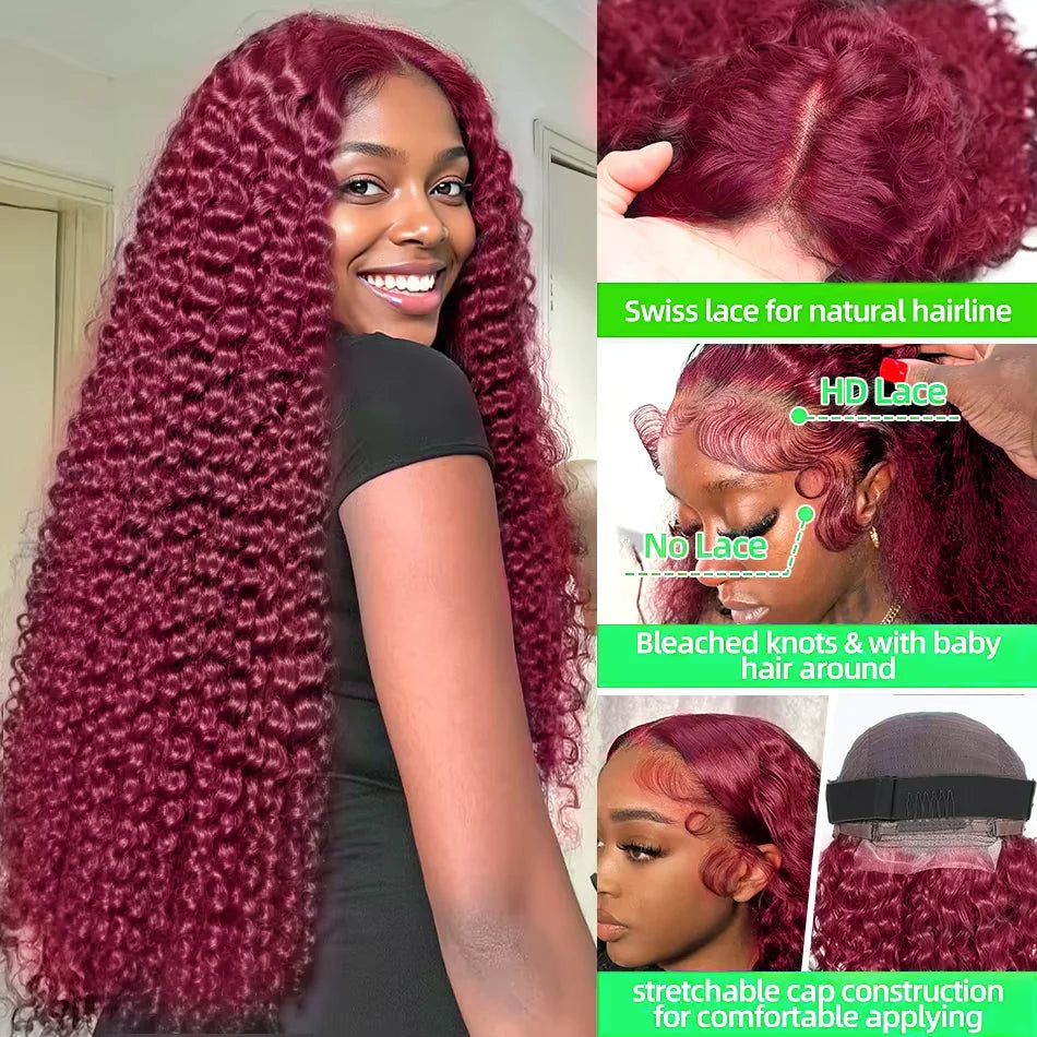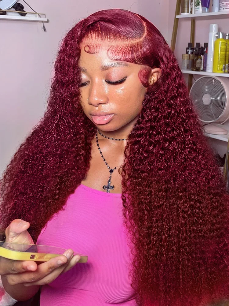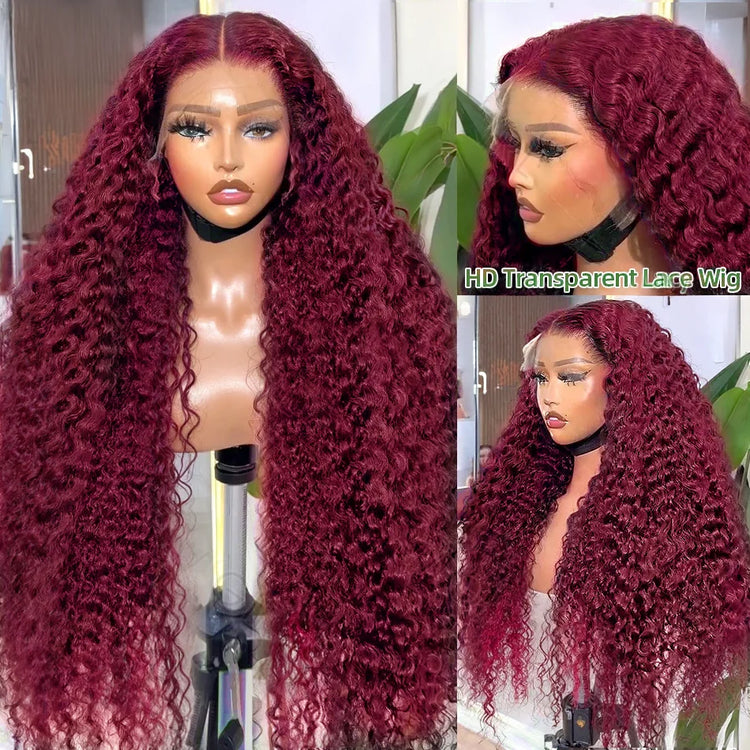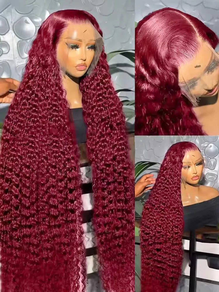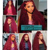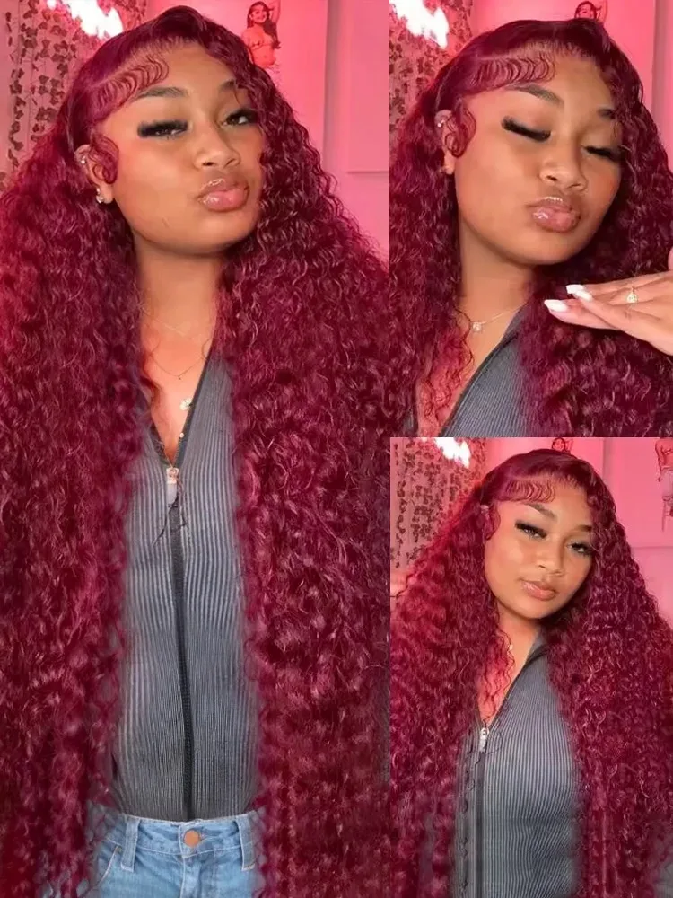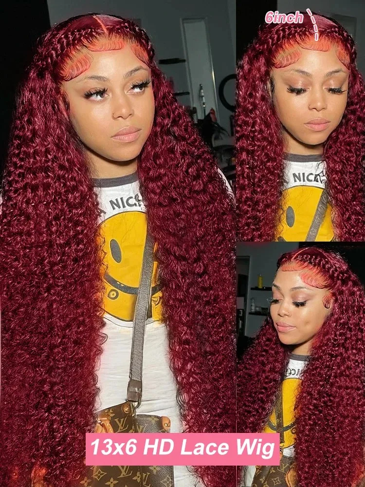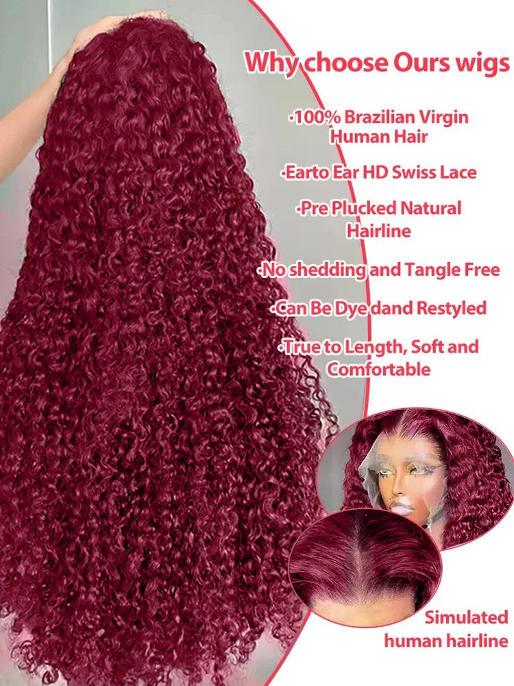 99J Burgundy 100% Human Hair 30 40 Inch Deep Wave 13x4 Lace Front Wig 13x6 Red Curly Lace Frontal Wigs HD Water Kinky Brazilian