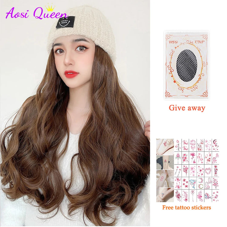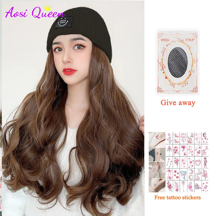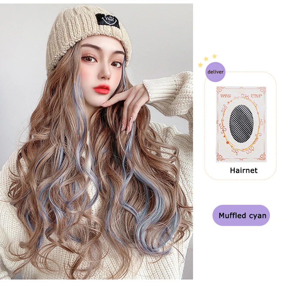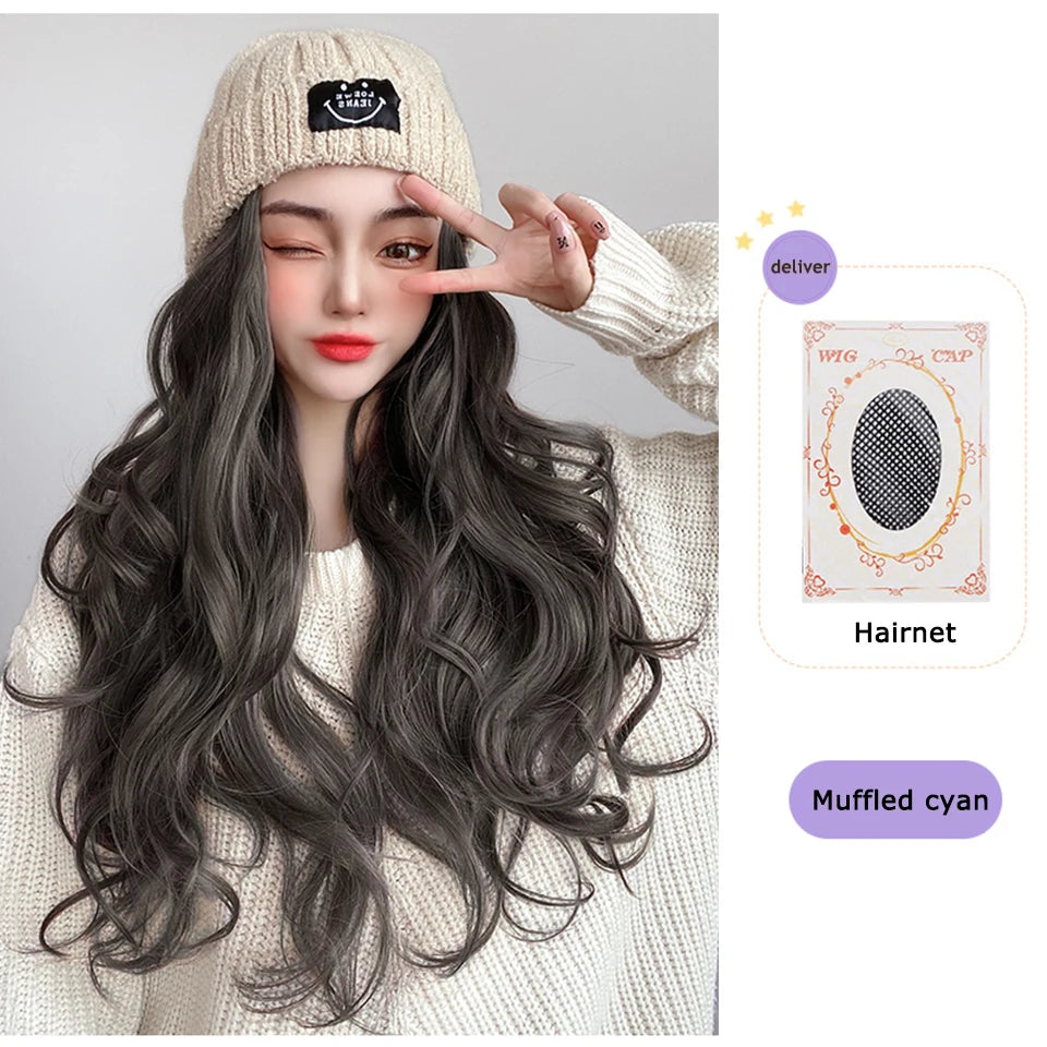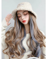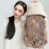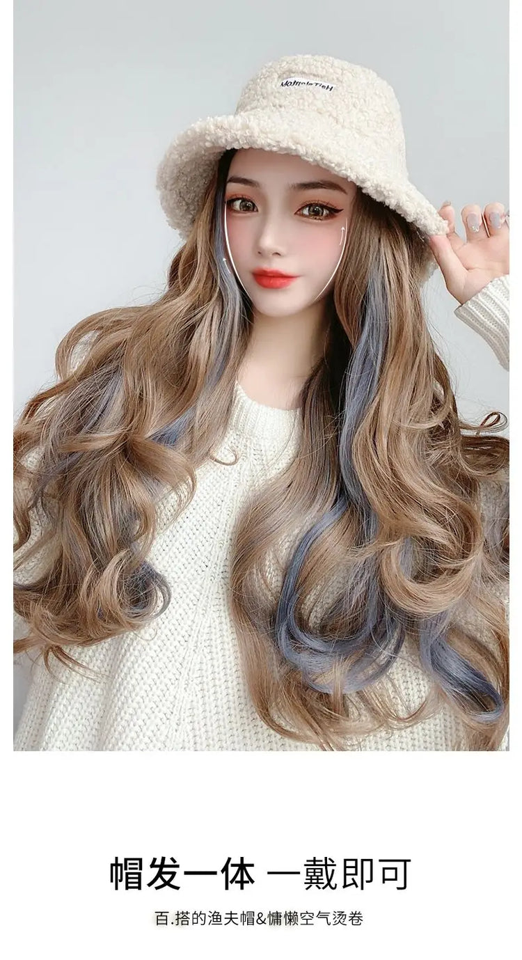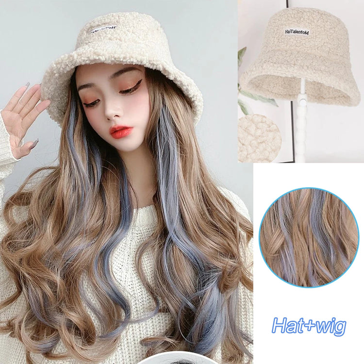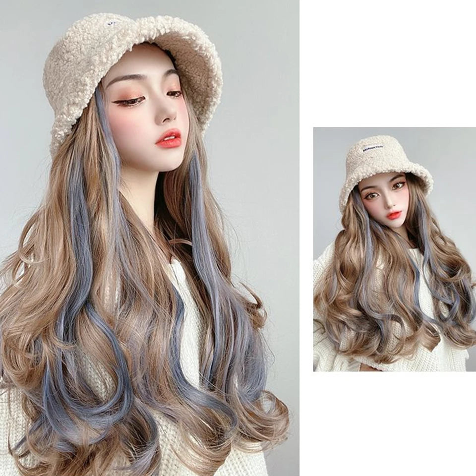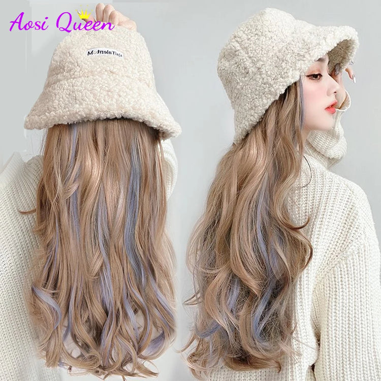 AS Syntheti hair Lamb swool Painter hat Mixed with haze blue Brown Wigblack Straight Wigs Synthetic Hat Wig
